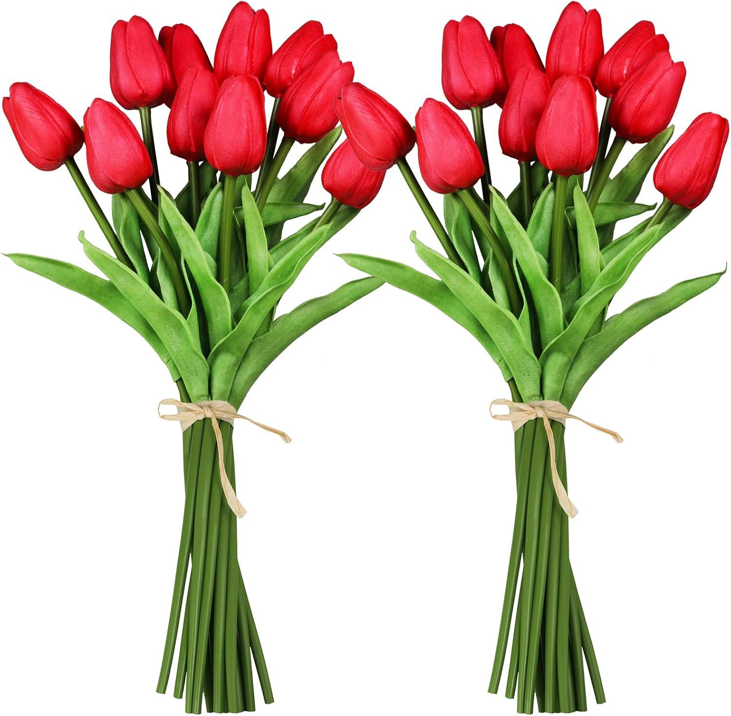 20 Pcs Artificial Turquoise Tulip Flowers Faux Tulip Stems PU Real Touch Tulips 12.8″ Tall for Easter Spring Vase Wedding Bouquets Floral Arrangements Wreath Table Centerpiece Indoor Outdoor Decor(Red)