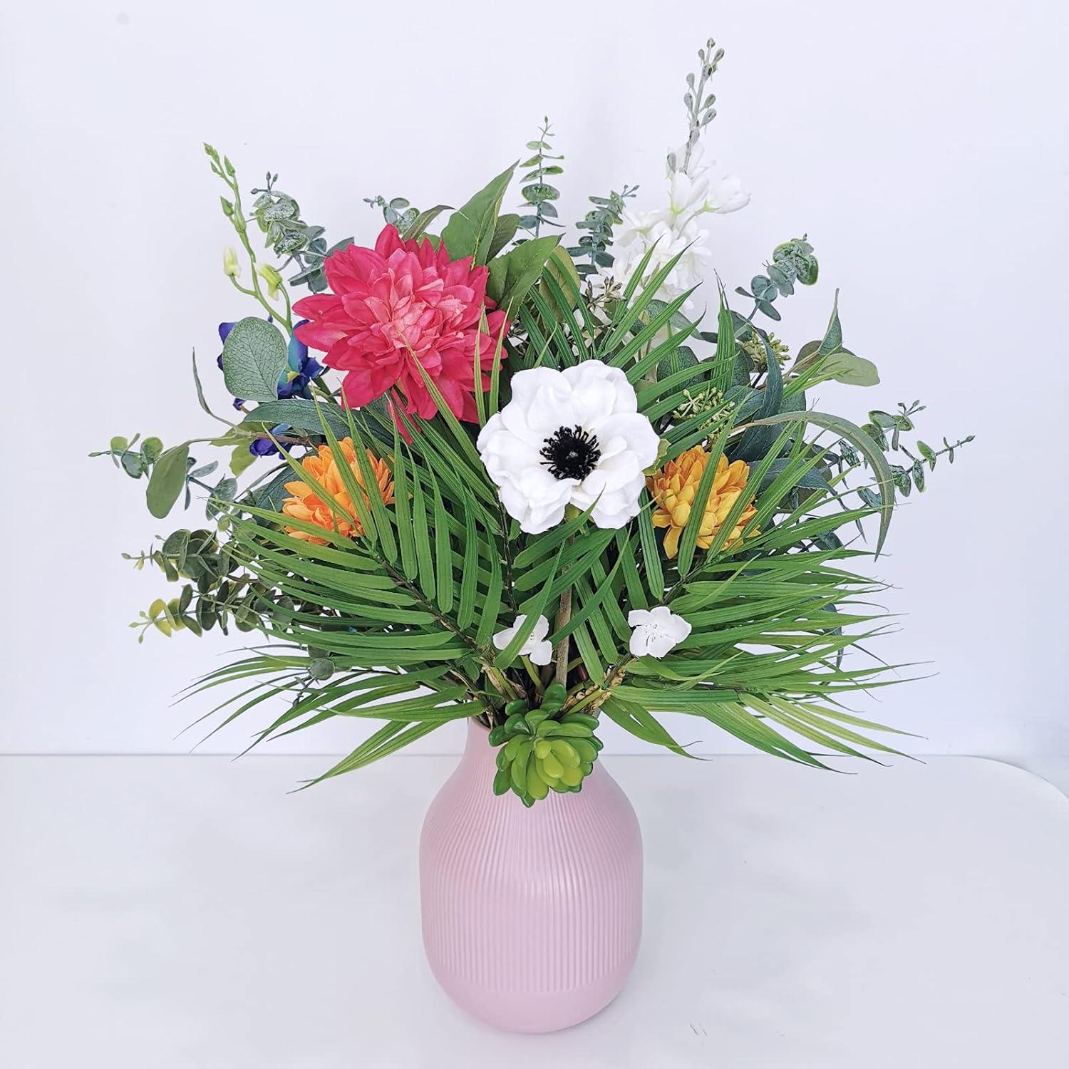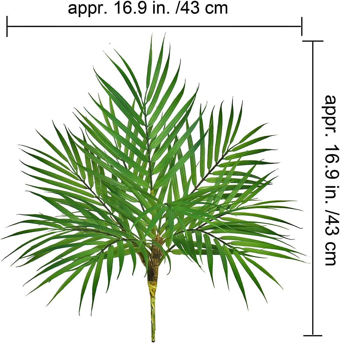 2 pcs Artificial Tropical Areca Palm Leaf Bushes Faux Greenery Branches Stems in Green 16.9″ Tall for Vase Planter Floral Arrangement Bouquet Centerpiece Luau Haiwaiian Party Beach Wedding Decoration