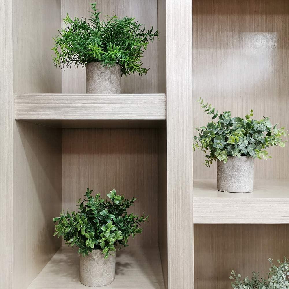 Winlyn 3 Pcs Artificial Potted Plants – Faux Eucalyptus, Boxwood, Rosemary, Greenery in Small Concrete Pots -Desk, Table, Shelf, Windowsill Decor for Indoor Outdoor Home Office