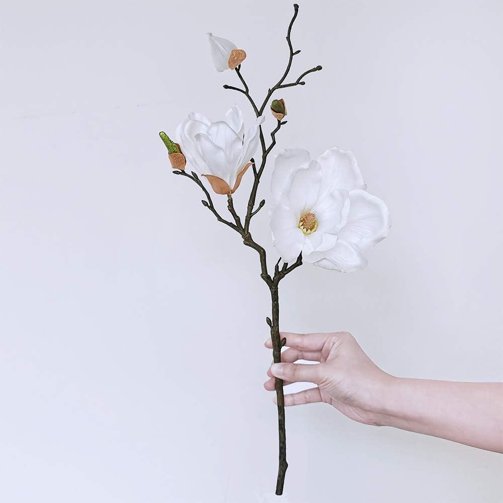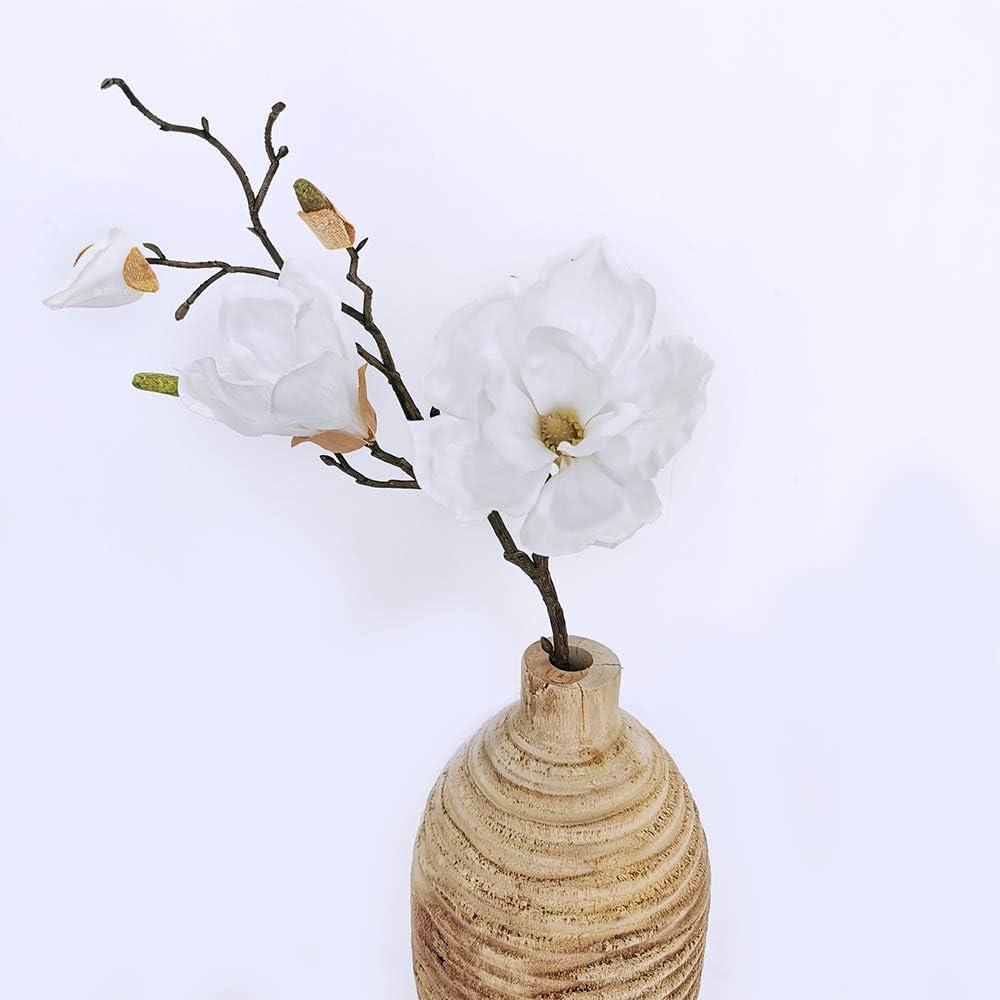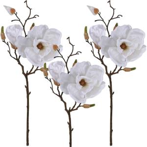 Winlyn 3 Pcs Silk Magnolia Flowers with Buds Branch Artificial Magnolia Blooms Wedding Flowers Bouquets Floral Stems in White 19″ Tall for Vase Floral Arrangement Table Centerpiece Home Decor