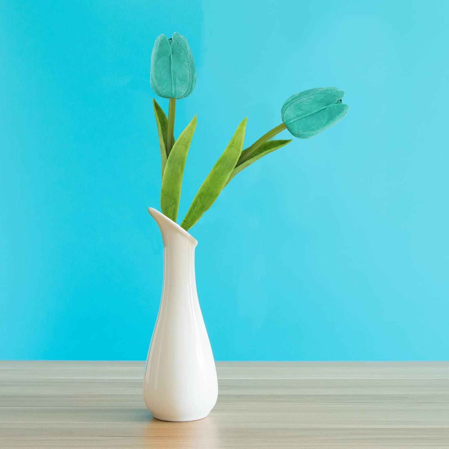 20 Pcs Artificial Turquoise Tulip Flowers Faux Tulip Stems PU Real Touch Tulips 12.8″ Tall for Easter Spring Vase Wedding Bouquets Floral Arrangements Wreath Table Centerpiece Indoor Outdoor Decor(Mixed)