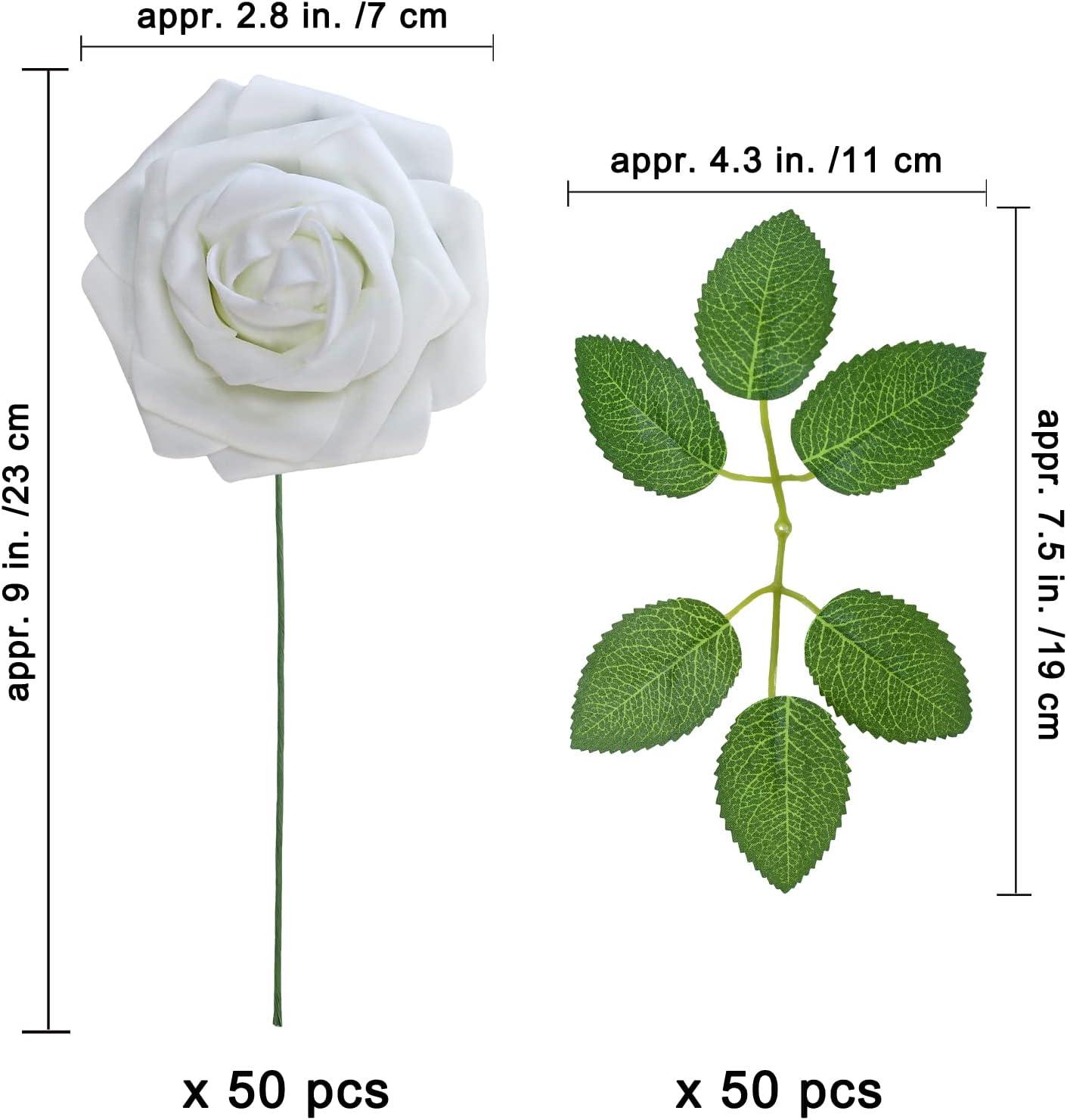 Winlyn 50 Pcs Real Looking Artificial Rose Flowers with Stems & Silk Leaves Bulk- Red, Pink, White for Wedding Bouquets Centerpieces Baby & Bridal Showers Valentine’s Day Mother’s Day DIY Floral Decor(White)