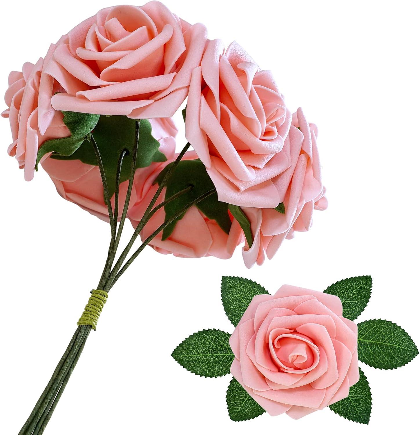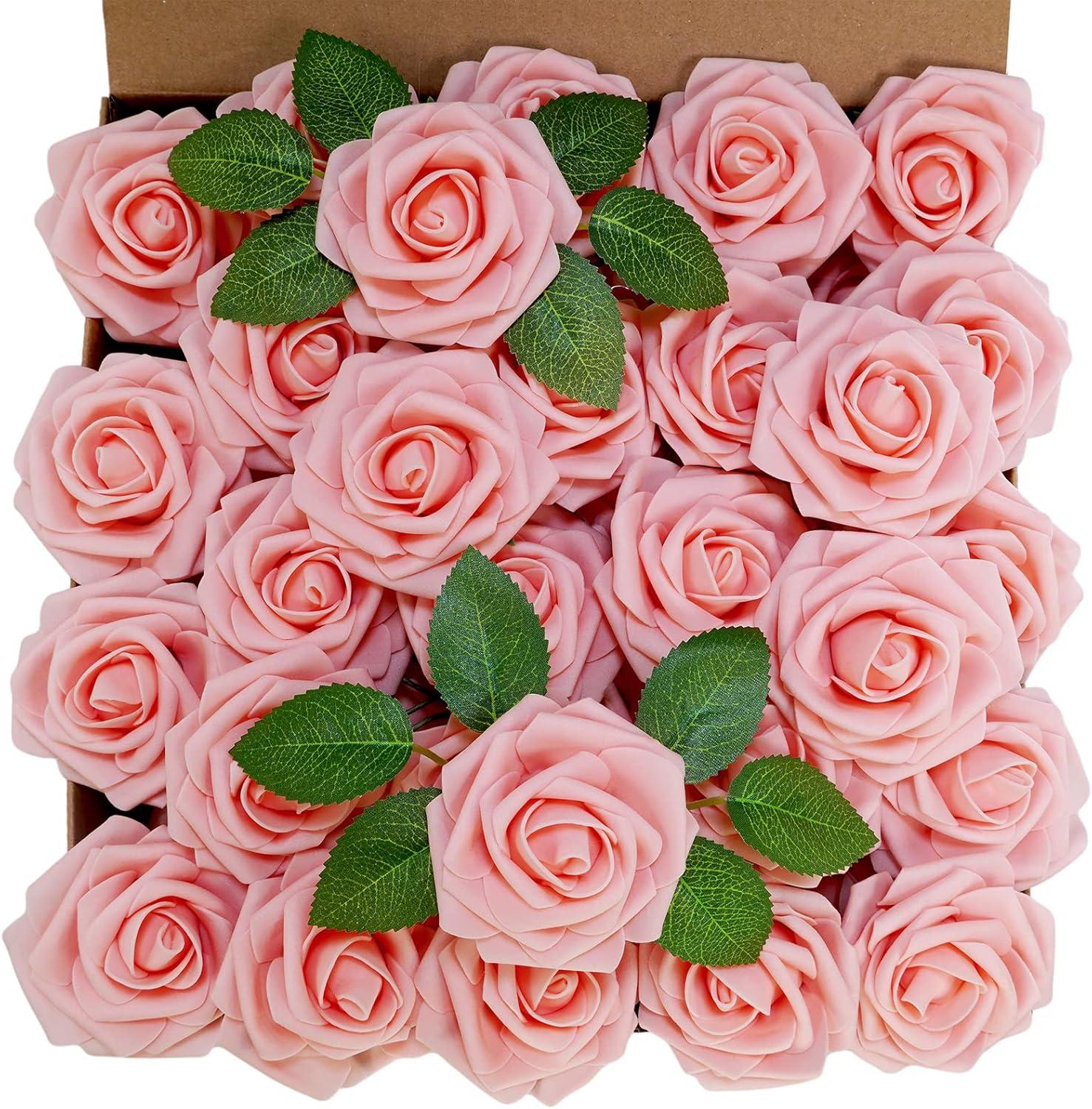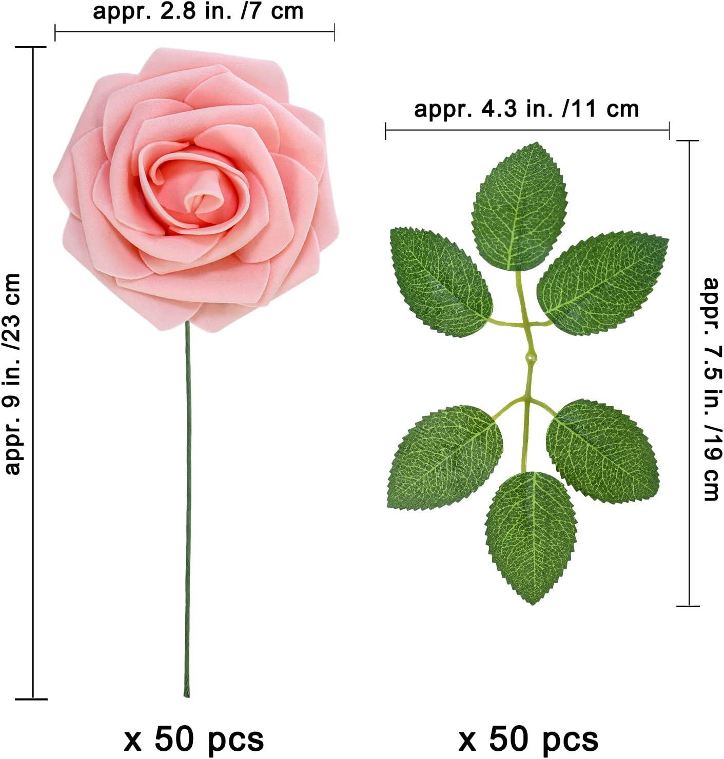 Winlyn 50 Pcs Real Looking Artificial Rose Flowers with Stems & Silk Leaves Bulk- Red, Pink, White for Wedding Bouquets Centerpieces Baby & Bridal Showers Valentine’s Day Mother’s Day DIY Floral Decor(Shades of Pink)