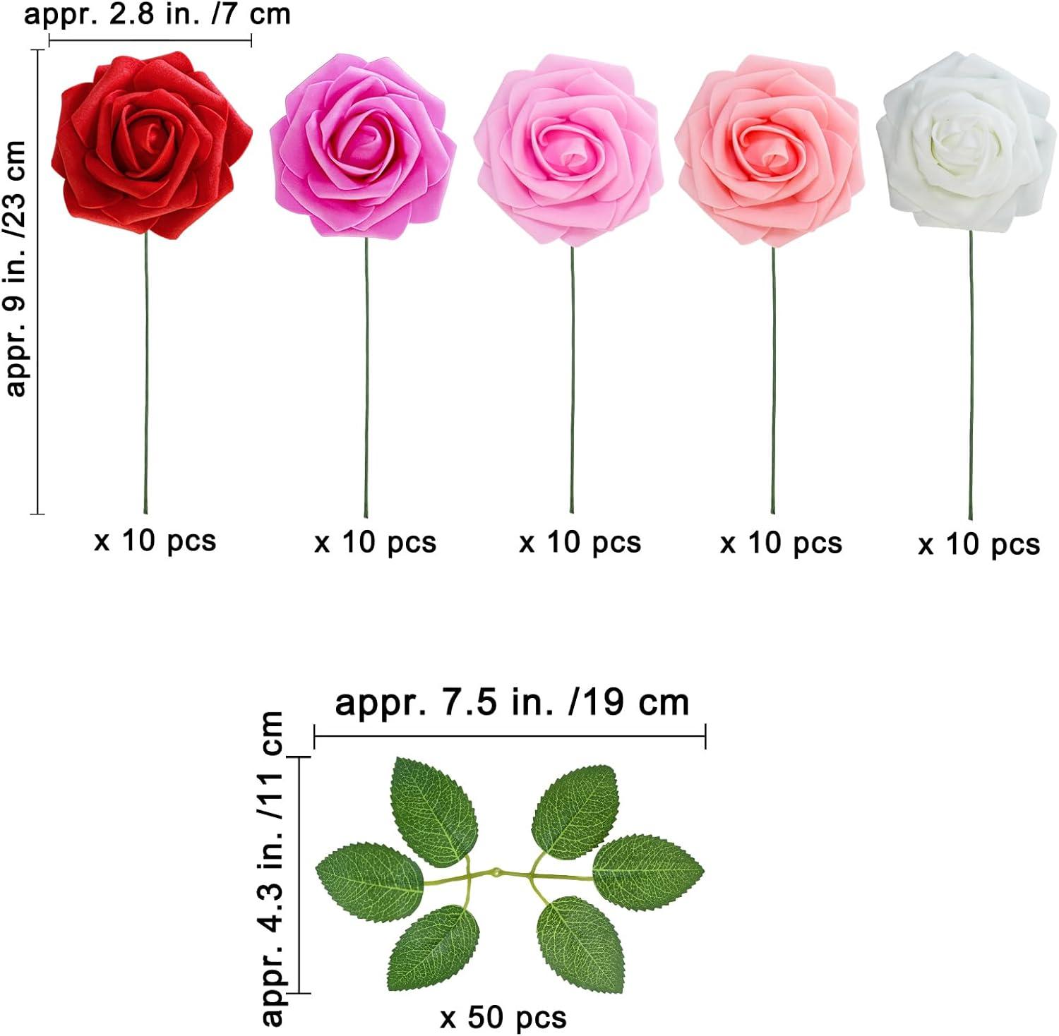 Winlyn 50 Pcs Real Looking Artificial Rose Flowers with Stems & Silk Leaves Bulk- Red, Pink, White for Wedding Bouquets Centerpieces Baby & Bridal Showers Valentine’s Day Mother’s Day DIY Floral Decor(Multi Color)