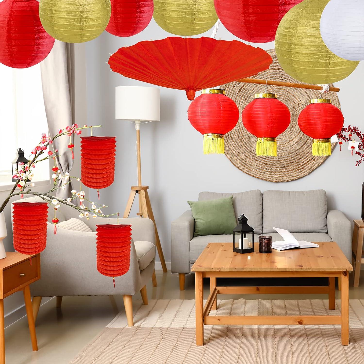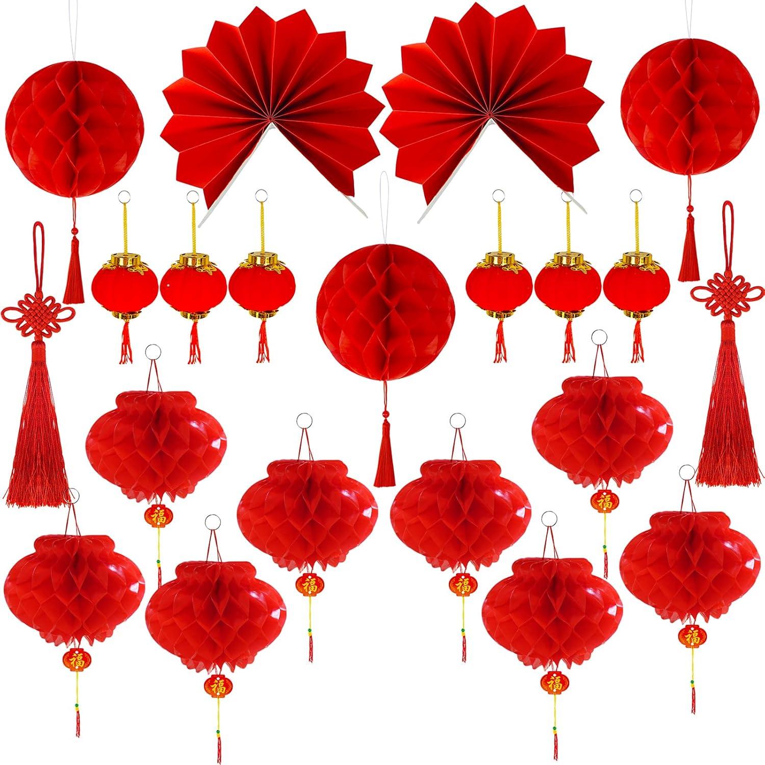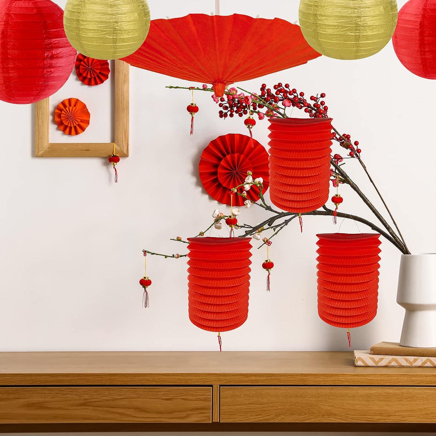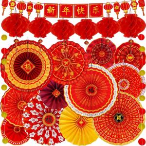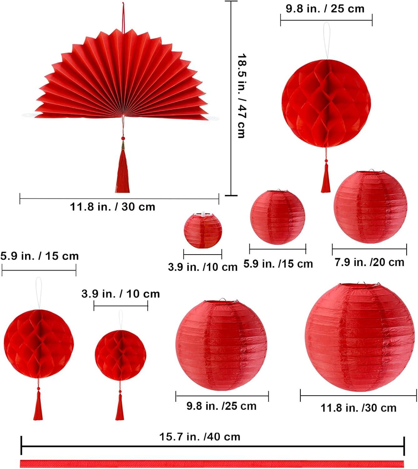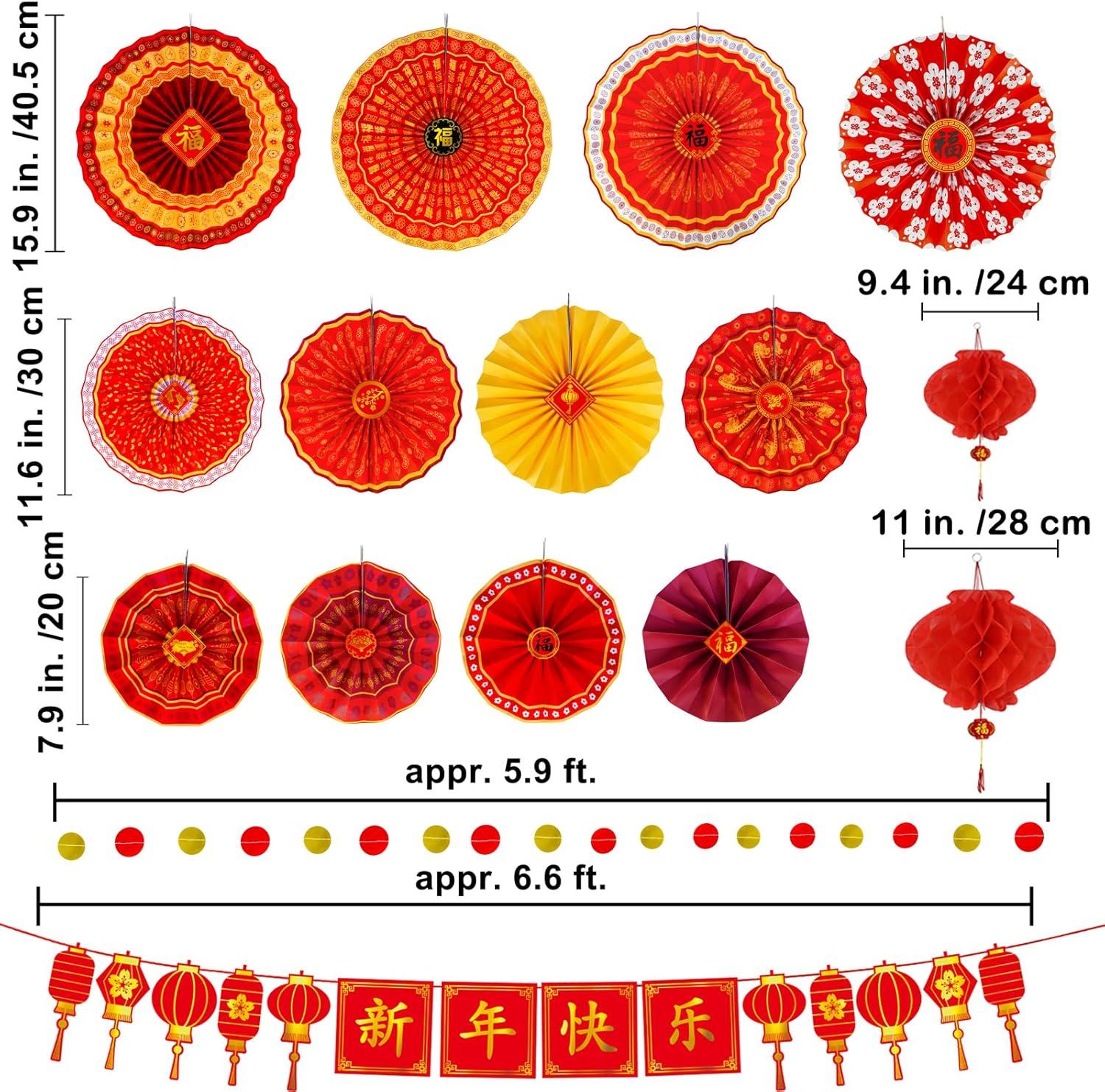 Winlyn 21 Pcs Bulk Chinese Red Lanterns Oriental Hanging Lucky Paper Fans New Year Banner for Asian Lunar New Year The Year of Snake Festival Wedding 2025 Decor