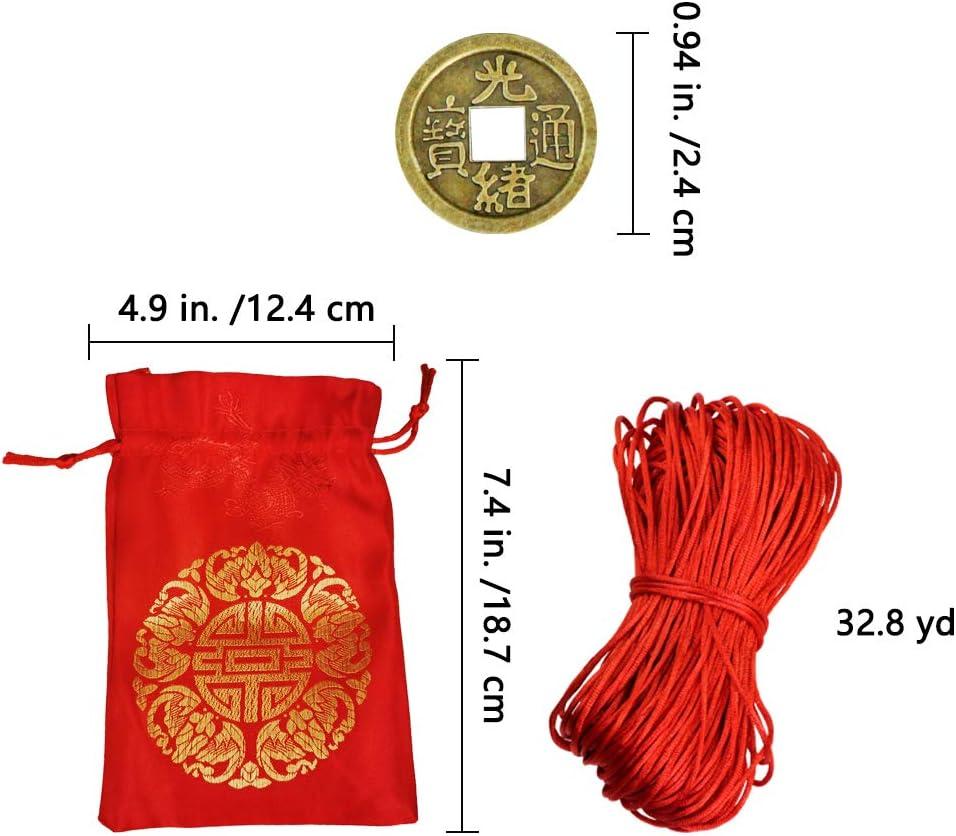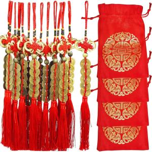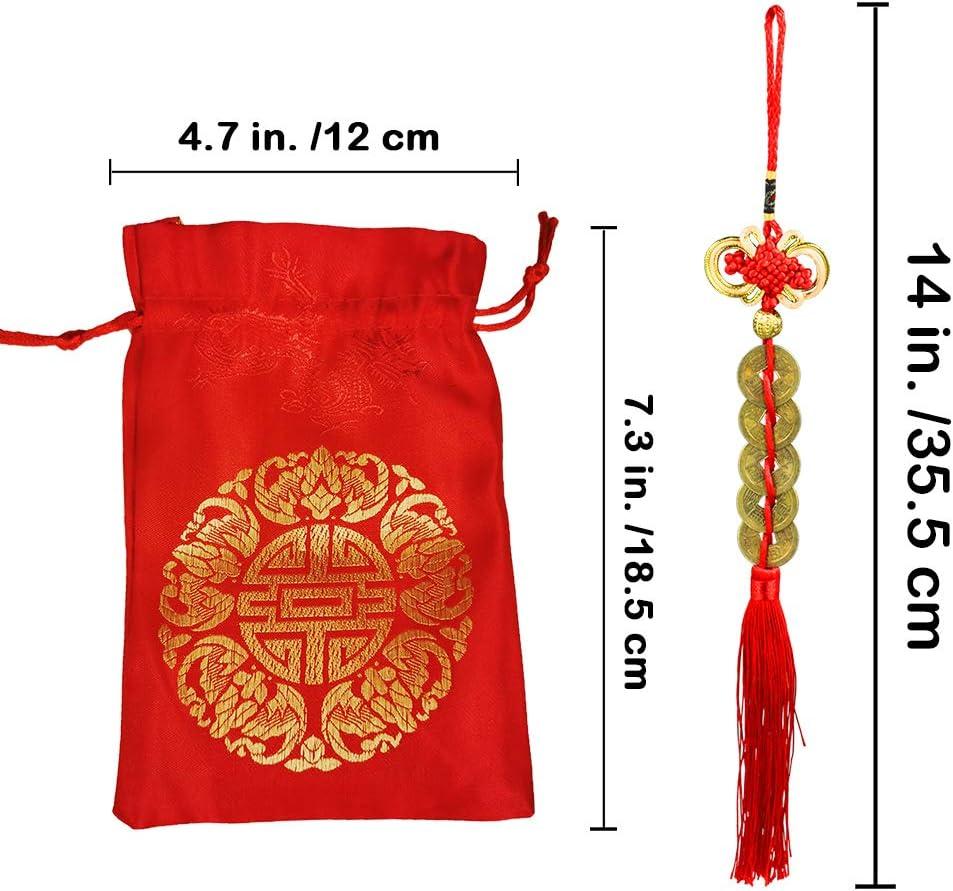 16 Pcs Chinese Lucky Coins Decorations Feng Shui Coins Ornaments Hanging Good Fortune Coins Ornaments Red Chinese Knot Luck Charm and fu Bags for Wealth Health Success Asian Chinese Lunar New Year
