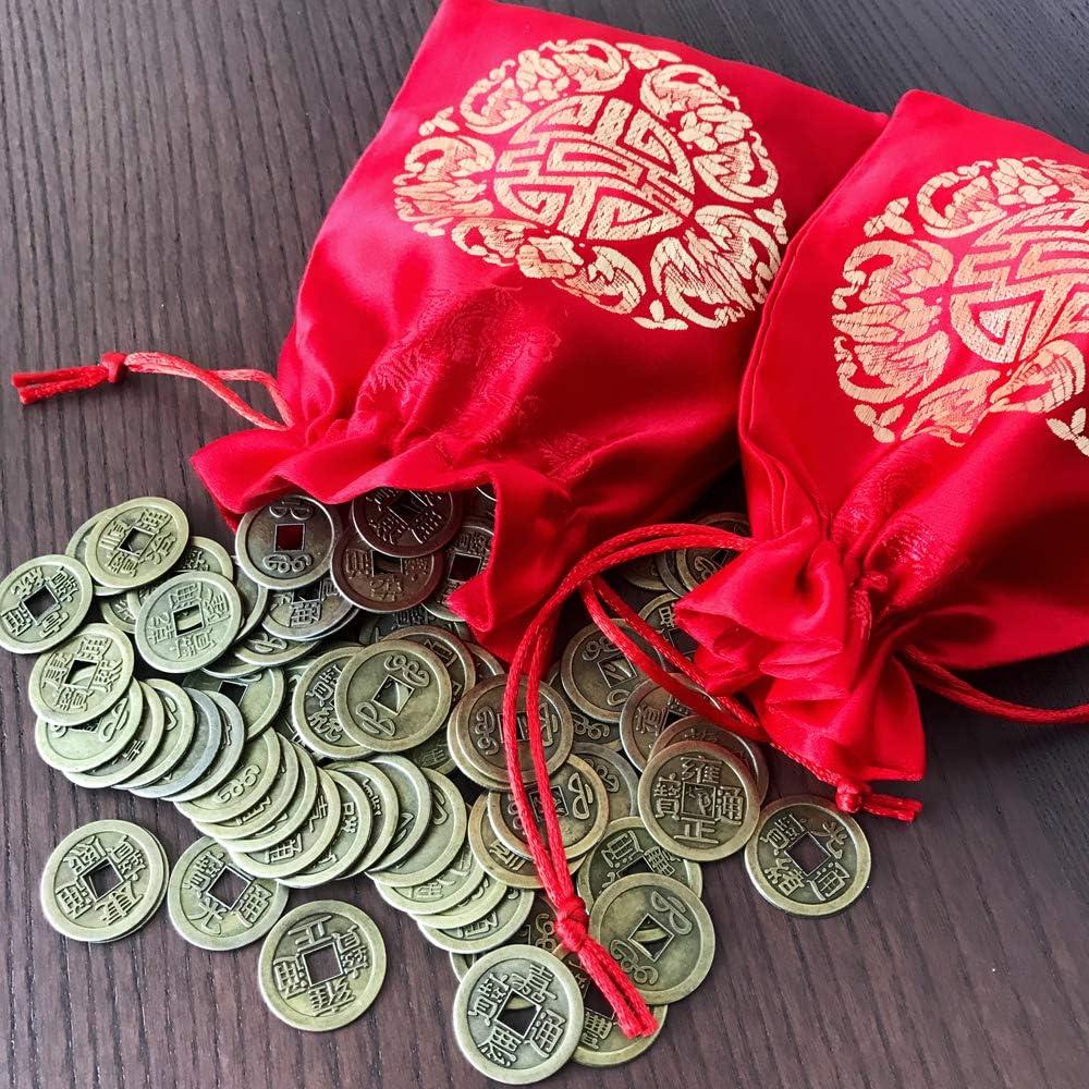 260 Pcs Chinese Lucky Coins Feng Shui Decorations for Good Fortune and Luck With Bag – Asian Lunar New Year 2025 Year of The Snake Health Wealth Bracelet Charms