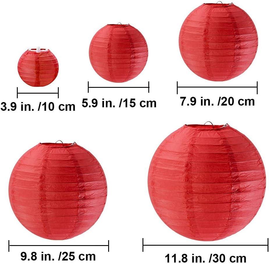 Supla 28 Pcs 5 Sizes Chinese New Year Decorative Red Paper Lanterns Hanging Chinese Japanese Lanterns Round Party Lanterns for Spring Festival Holiday Season Decorations
