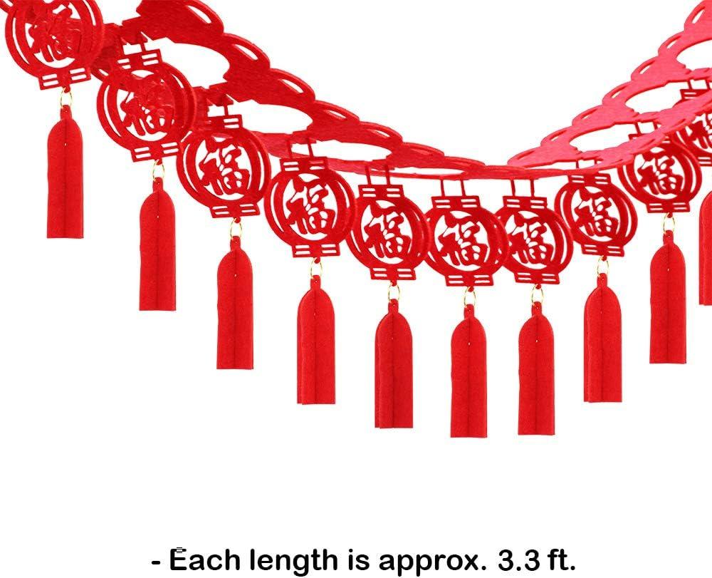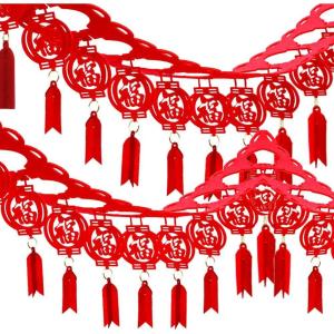 Supla 8 Pack 26.2′ Long Chinese New Year Garland Decorative Red Hanging Good Luck Garland Chinese Spring Felt String Garland for Asian Chinese Festival 2025 Lunar Year of The Dragon Party Decorations