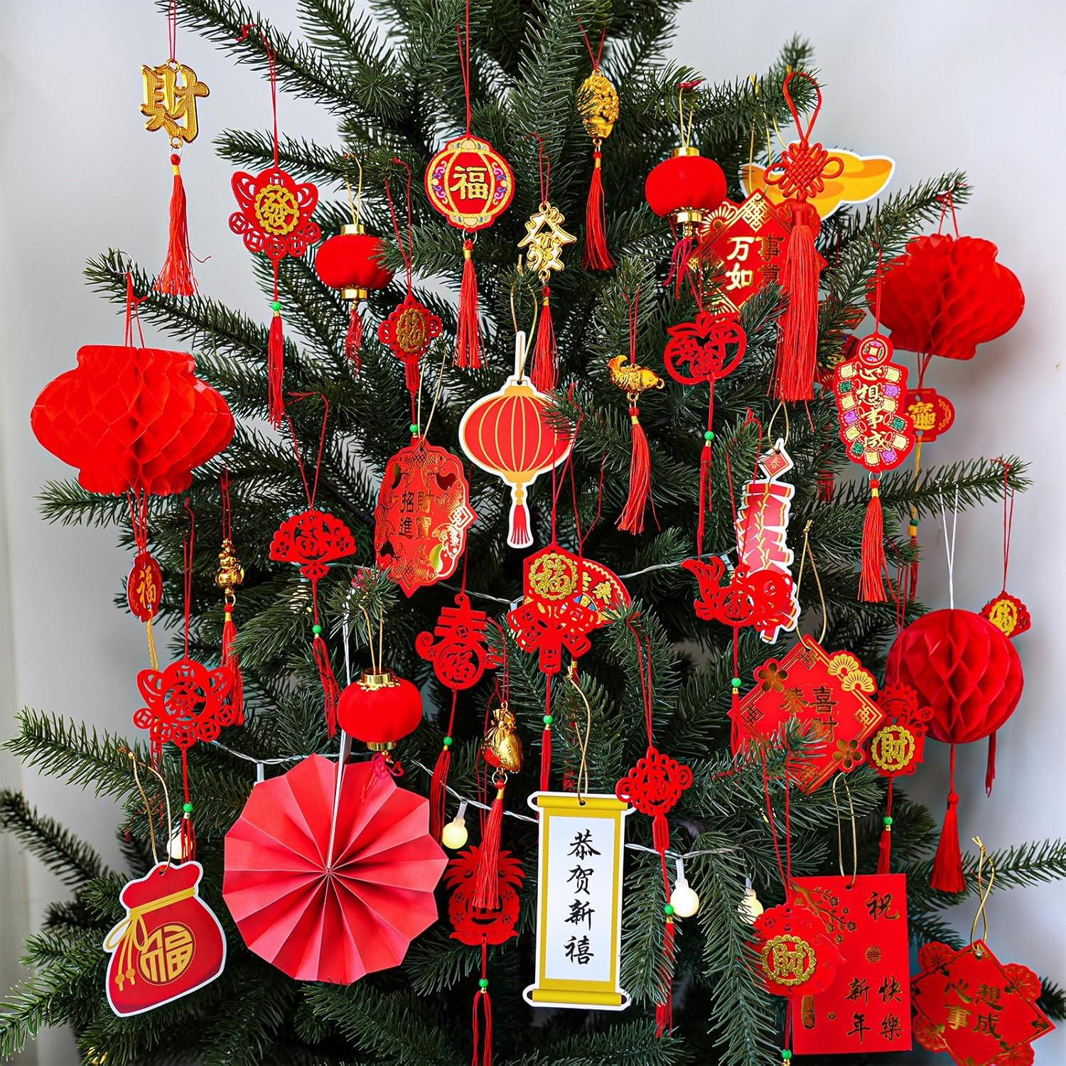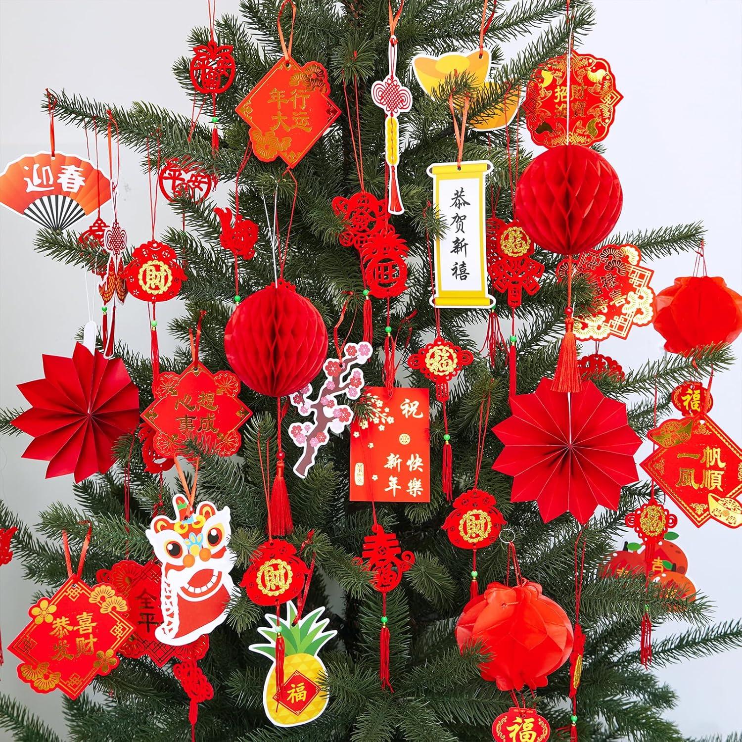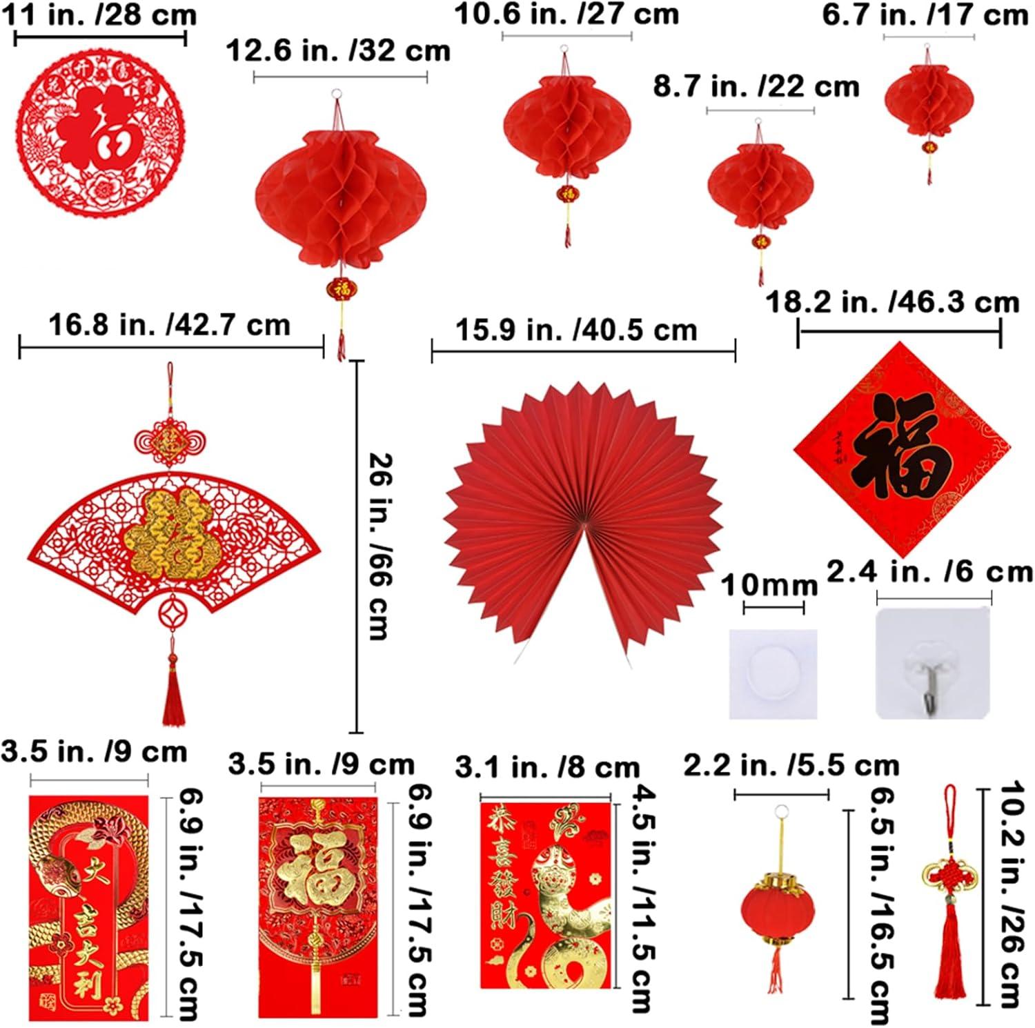 Supla 82 Pcs Chinese New Year Decorations Chinese Hanging Good Luck Ornaments Red Lanterns Festive Tree Ornaments Paper Fans for Asian Chinese Lunar New Year 2025 Year of The Snake Party Decor