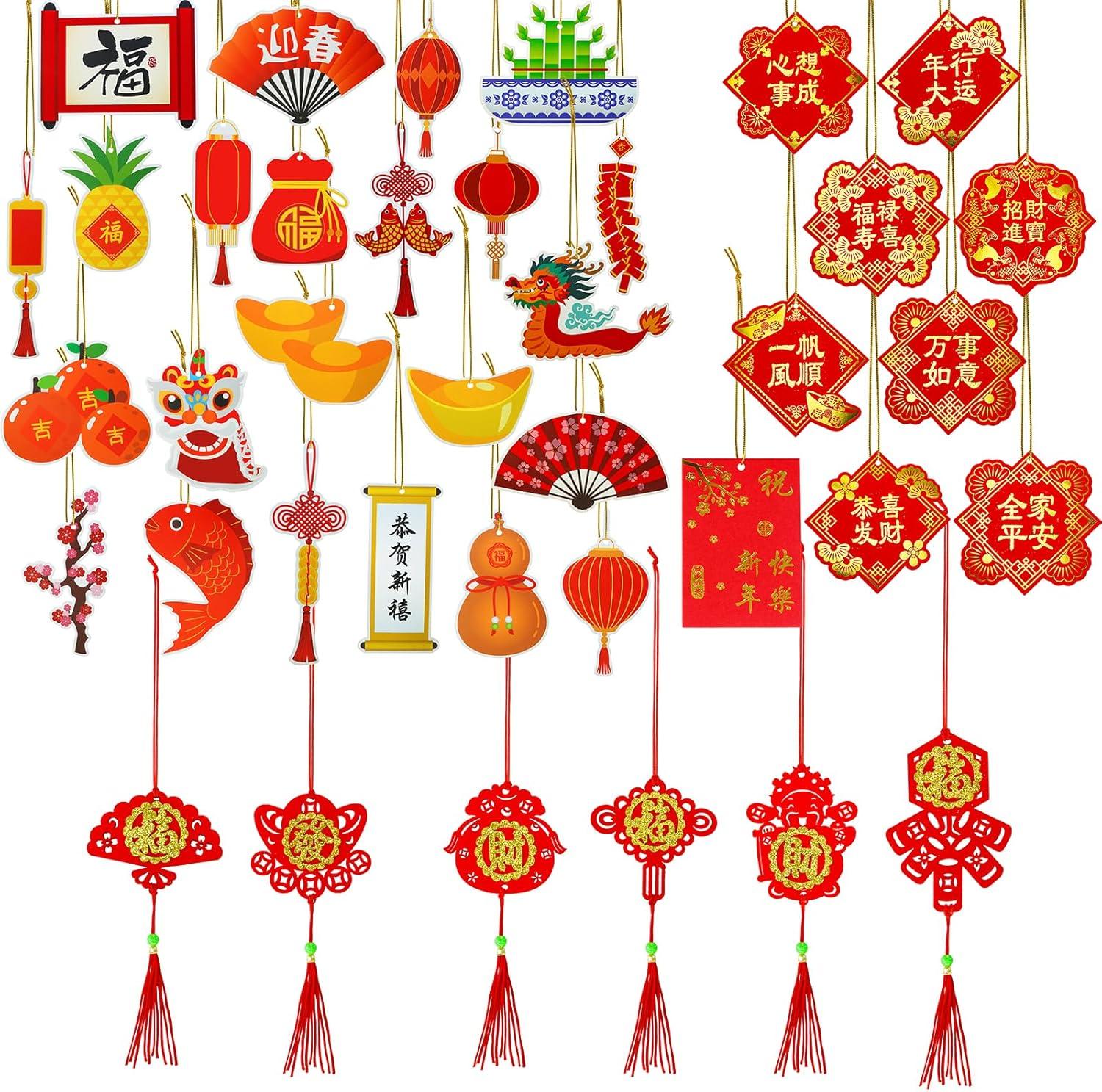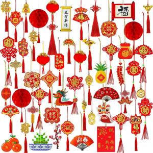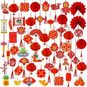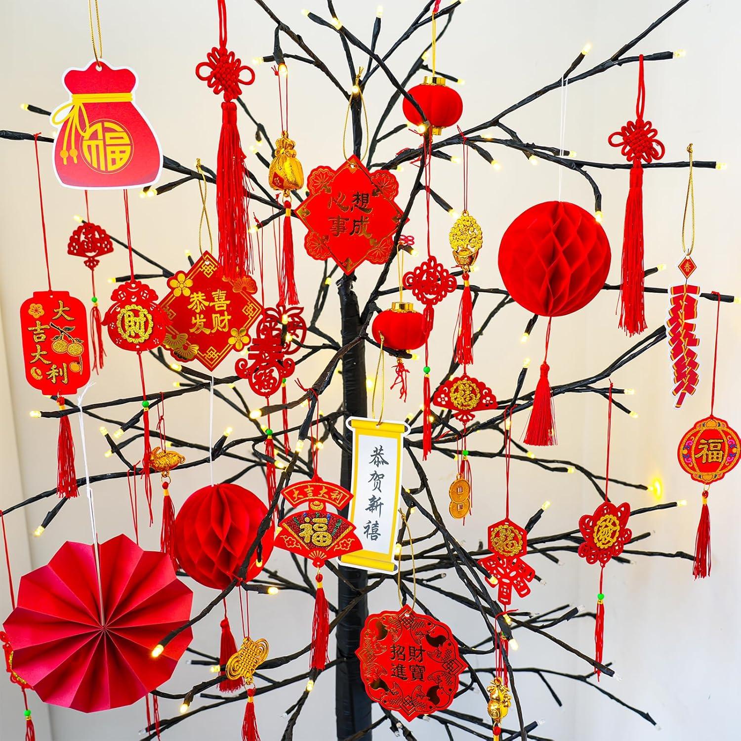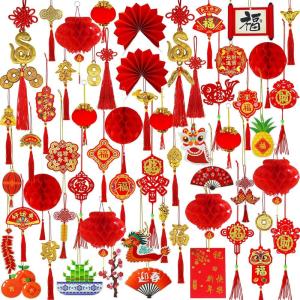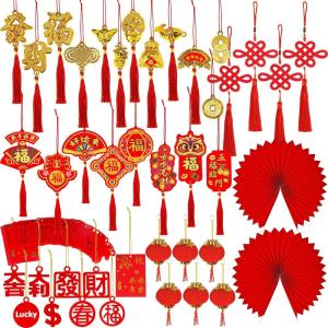 Supla 82 Pcs Chinese New Year Decorations Chinese Hanging Good Luck Ornaments Red Lanterns Festive Tree Ornaments Paper Fans for Asian Chinese Lunar New Year 2025 Year of The Snake Party Decor
