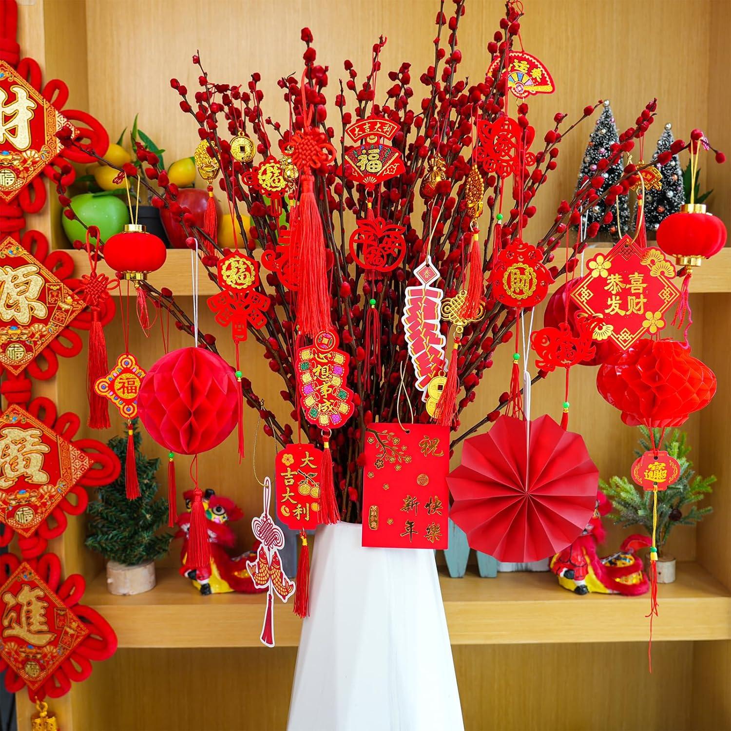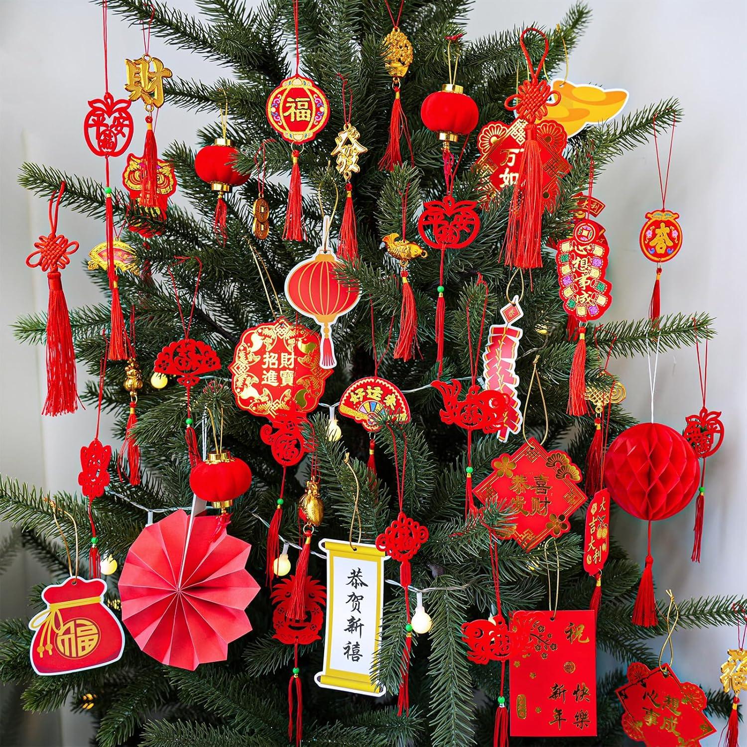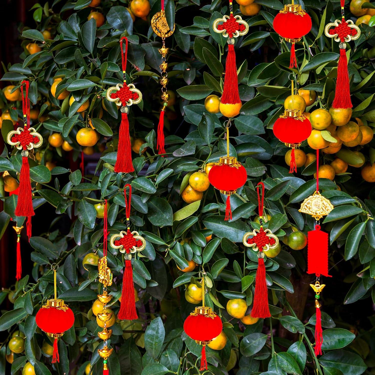 Winlyn 128 Pcs Chinese Lunar New Year Hanging Ornaments – Red Lanterns, Lucky Knot Tassels for Asian Vietnamese TET 2025 Snake Year Party Decorations – Festival Tree Good Luck Fortune