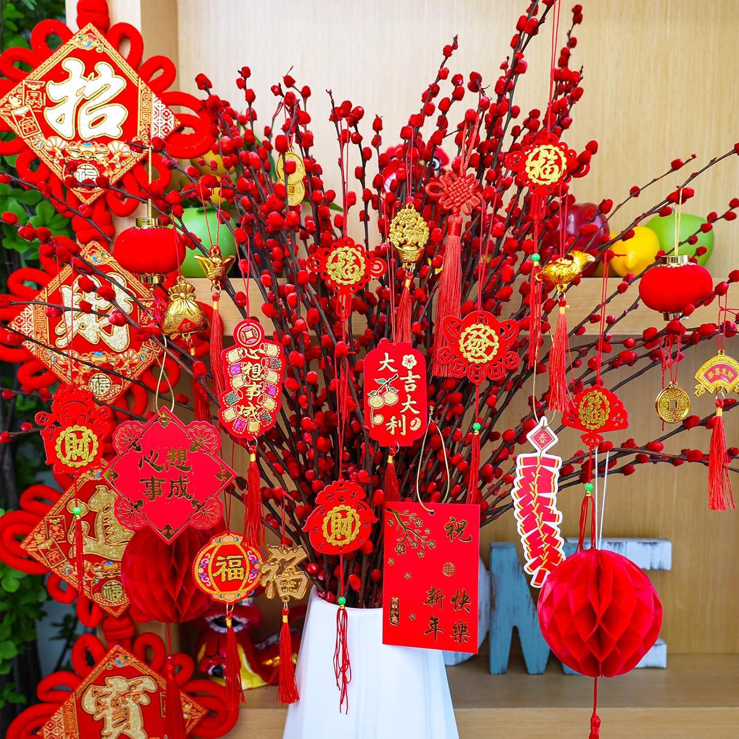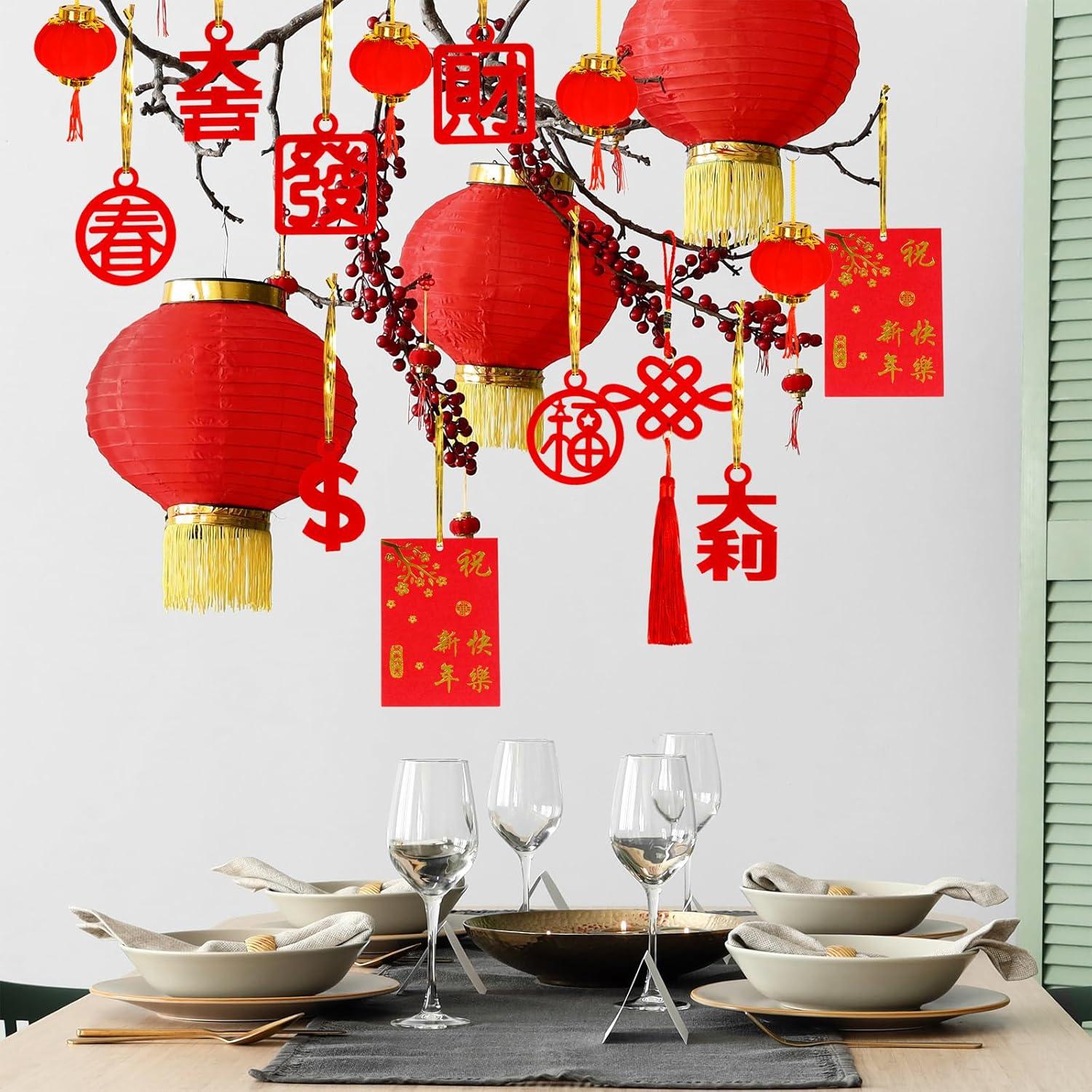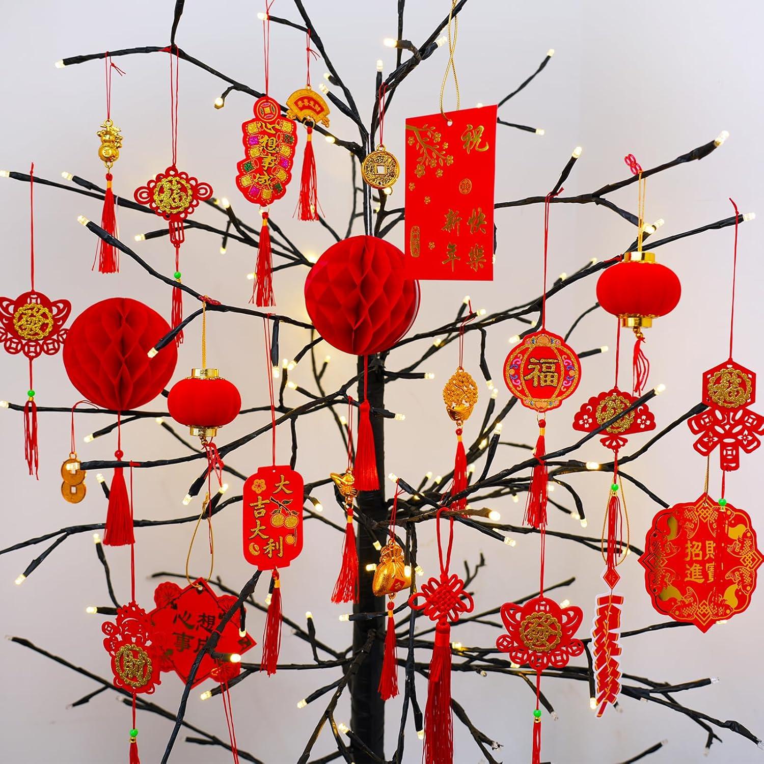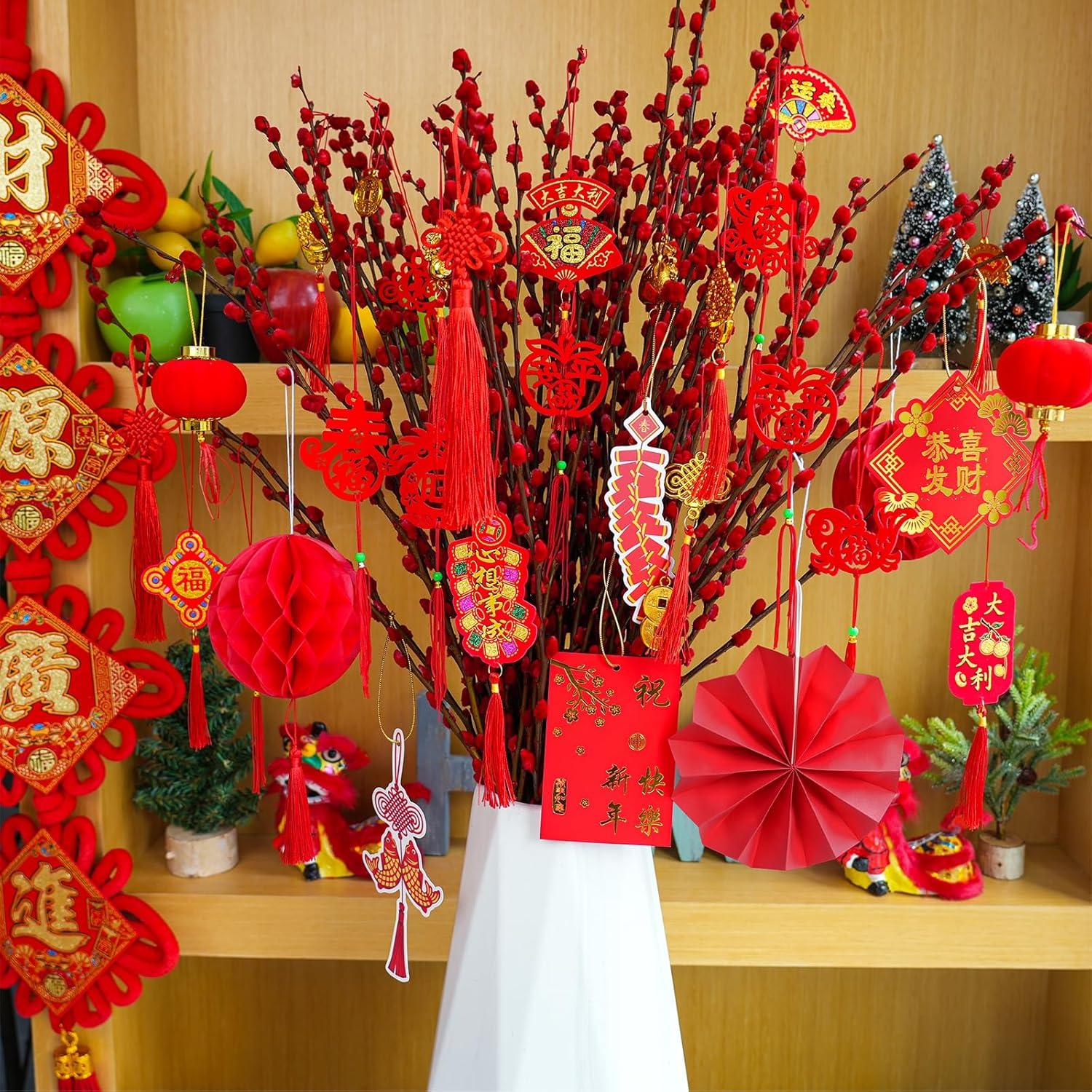 Winlyn 27 Pcs Chinese New Year Decorations Fu Red Knot Tassel Hanging Oriental Lucky Ornaments Spring Wall Ornaments Red Good Luck Tree Ornaments for Asian Lunar New Year 2025 Snake Year Party Decor