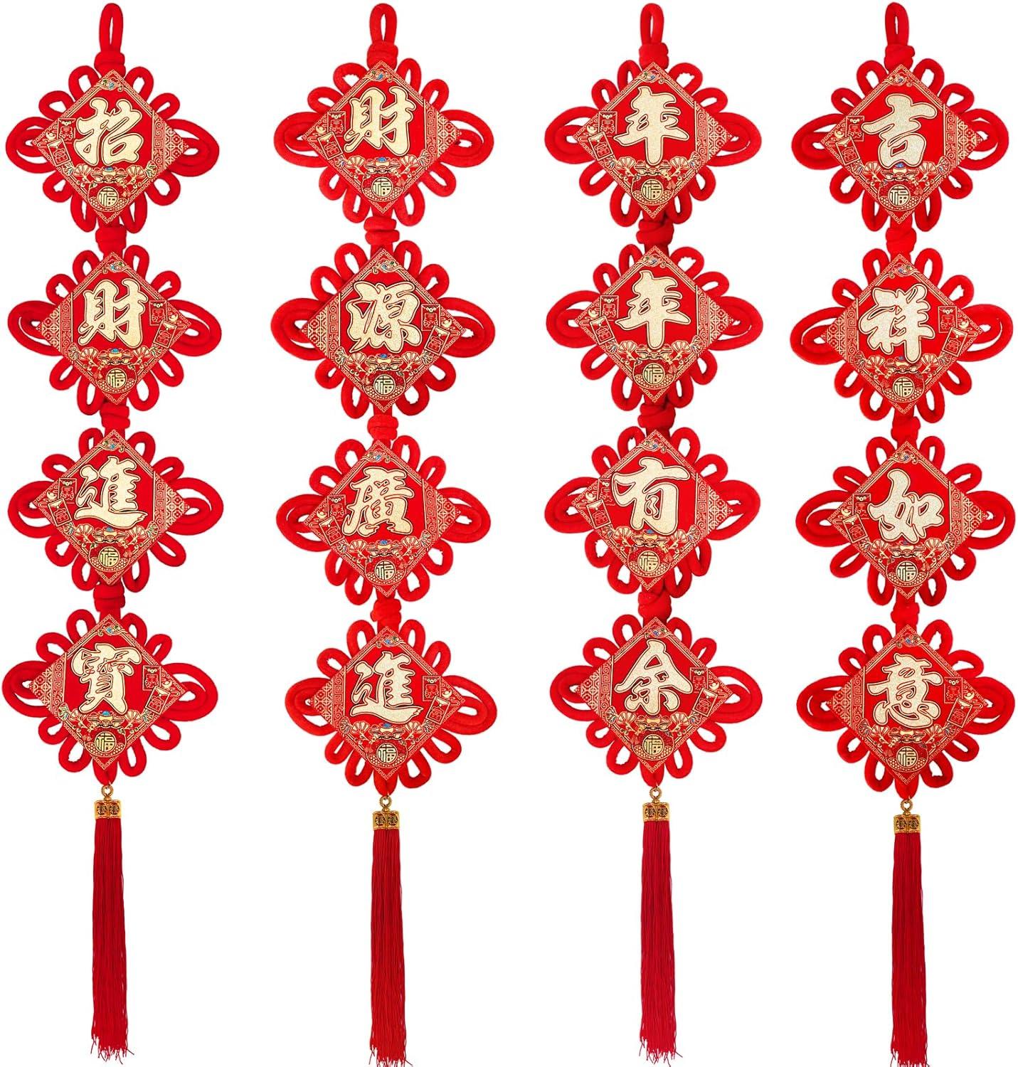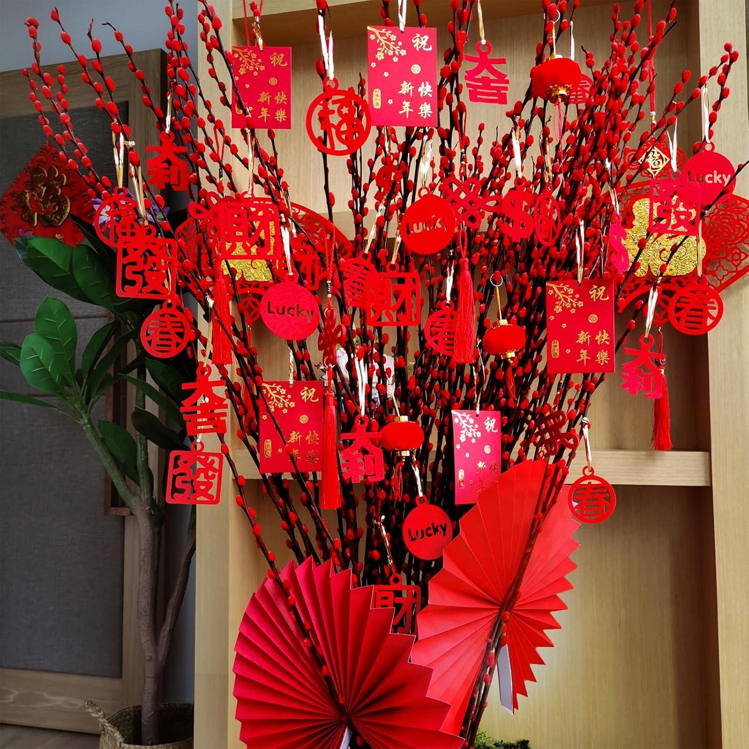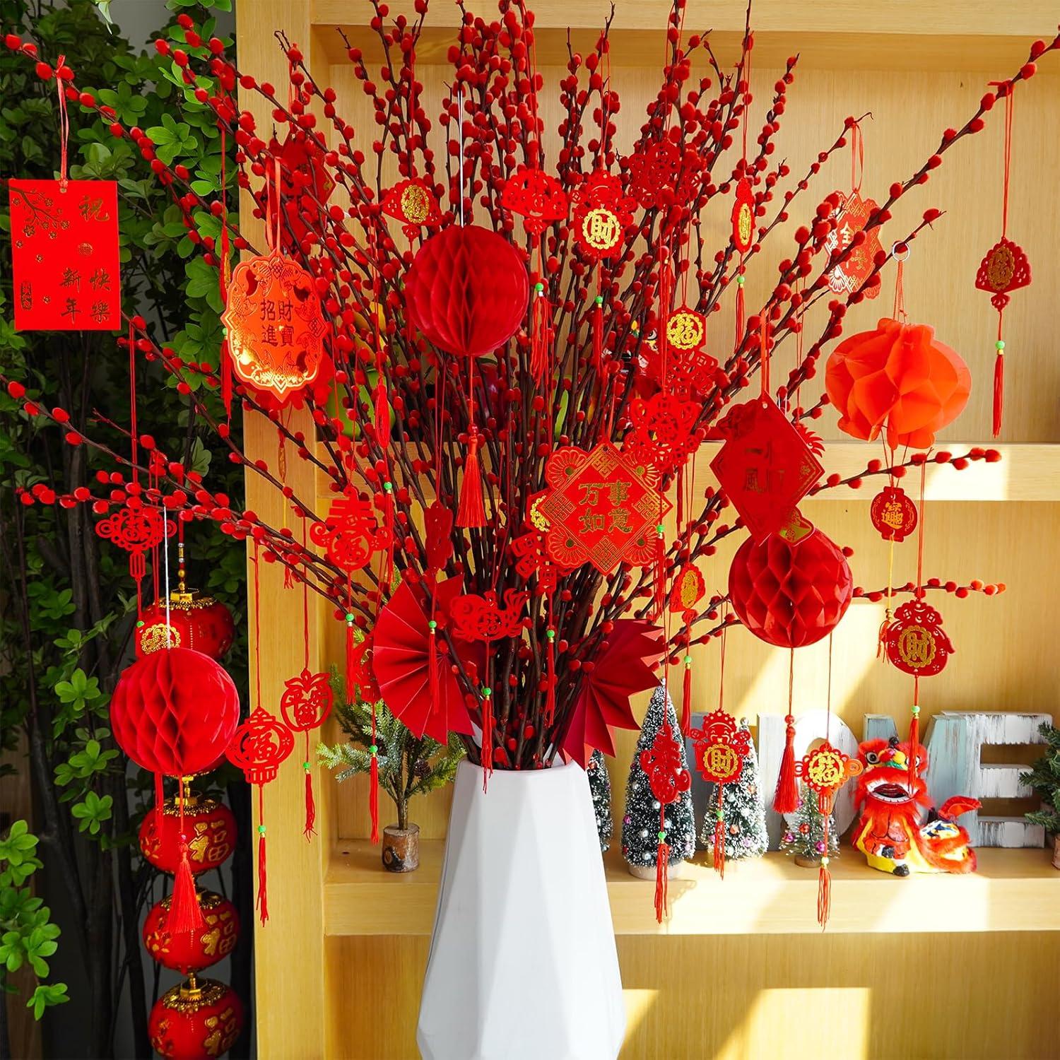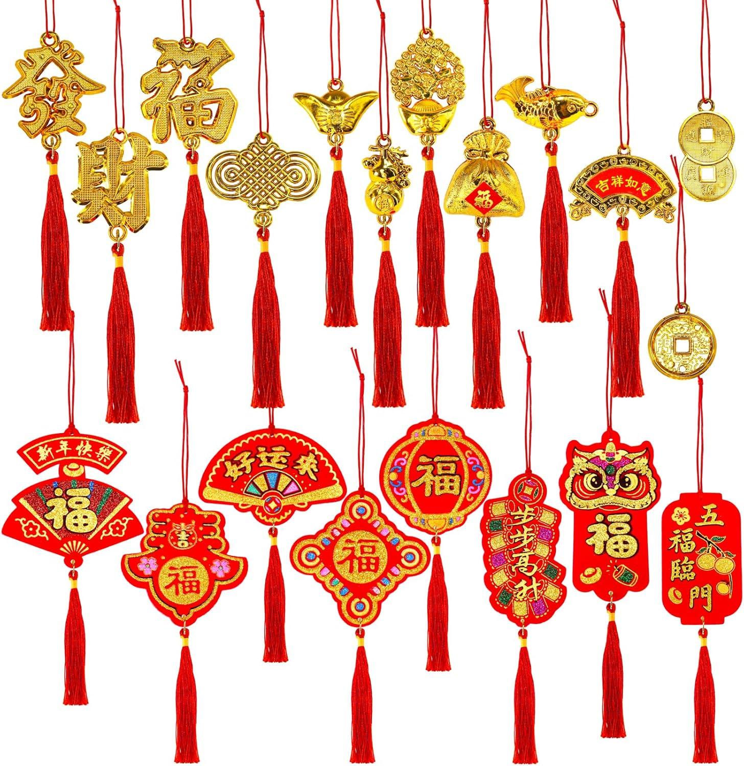 Winlyn 27 Pcs Chinese New Year Decorations Fu Red Knot Tassel Hanging Oriental Lucky Ornaments Spring Wall Ornaments Red Good Luck Tree Ornaments for Asian Lunar New Year 2025 Snake Year Party Decor