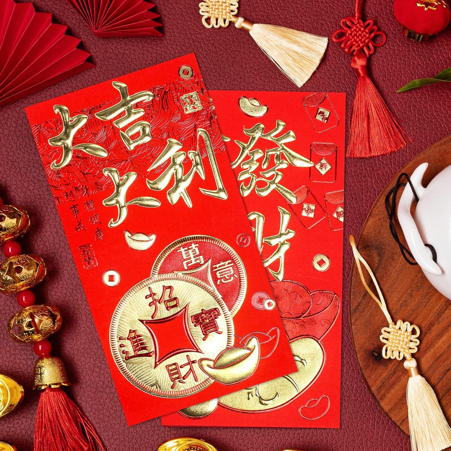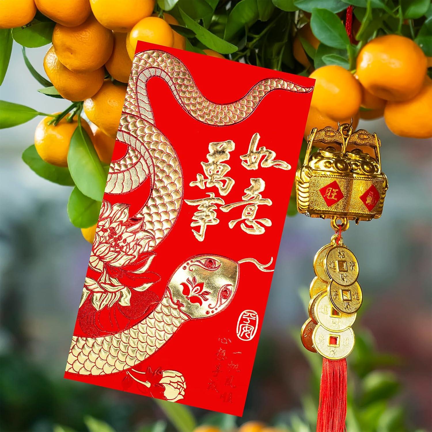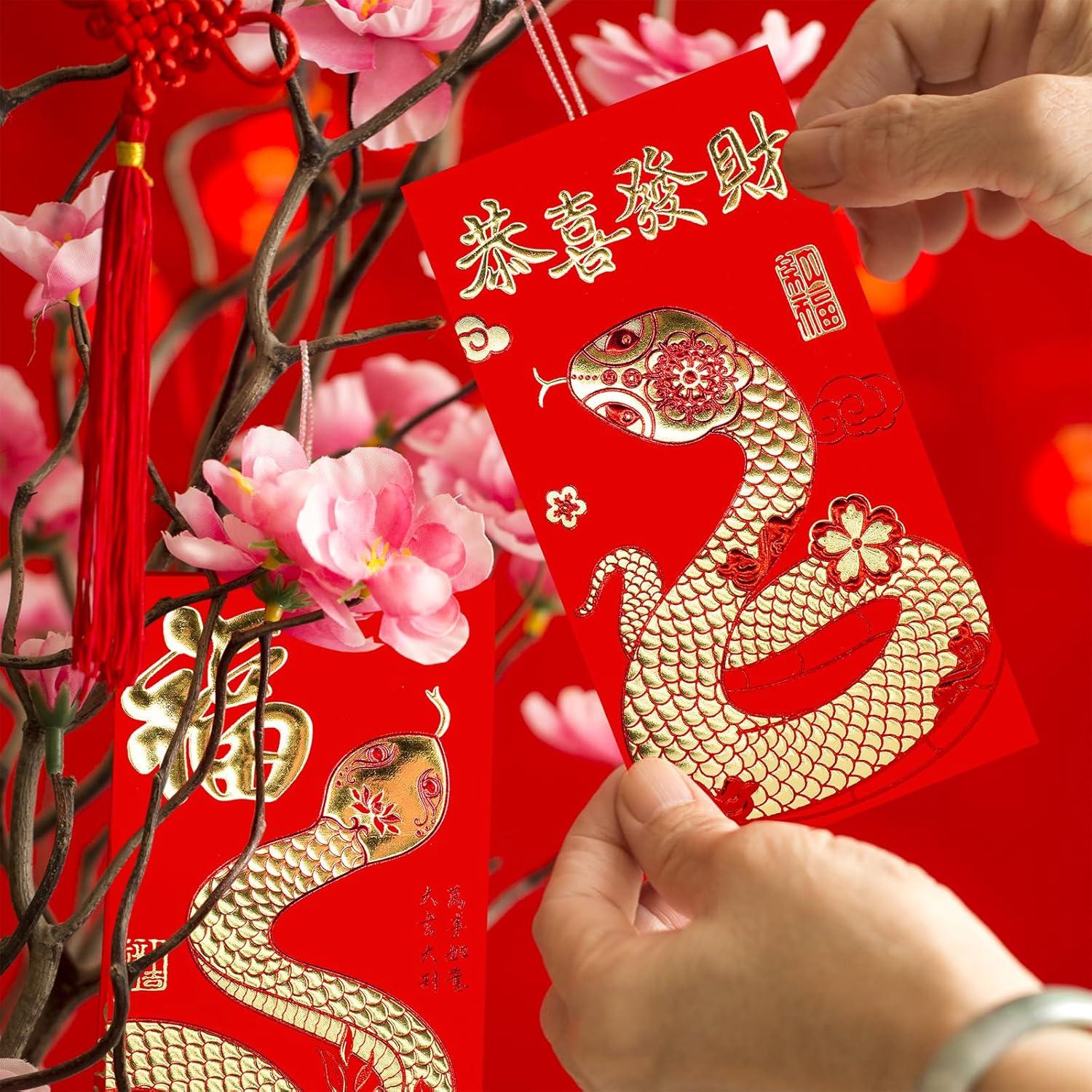 Winlyn 120 Pcs 12 Designs Chinese New Year Red Envelopes Bulk Lucky Money Pockets Hong Bao Lai See Red Packets Lucky Cash Envelopes for Asian Vietnamese Chinese Lunar New Year 2025 Year of the Snake