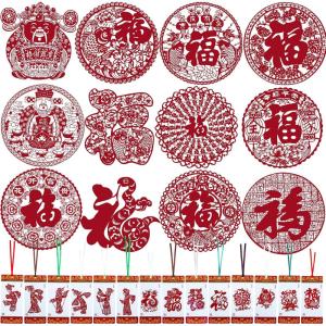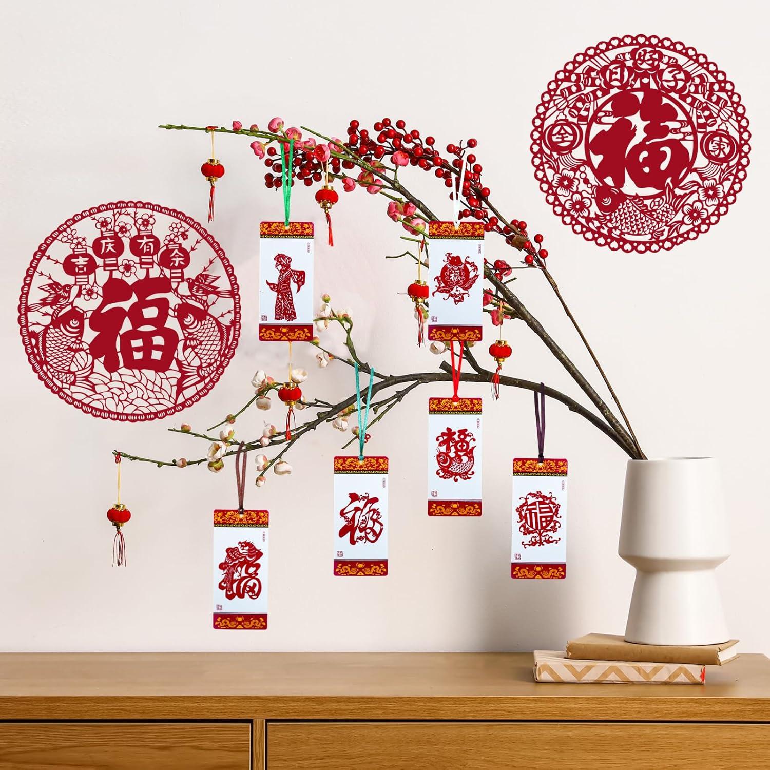 Winlyn 26 Pcs Asian Chinese Vietnamese Lunar New Year Window Wall Door Decorations FU Paper Cutting Good Luck Ornaments Festival Lucky Decorations for Oriental New Year 2025 Party Favors Wedding Decor