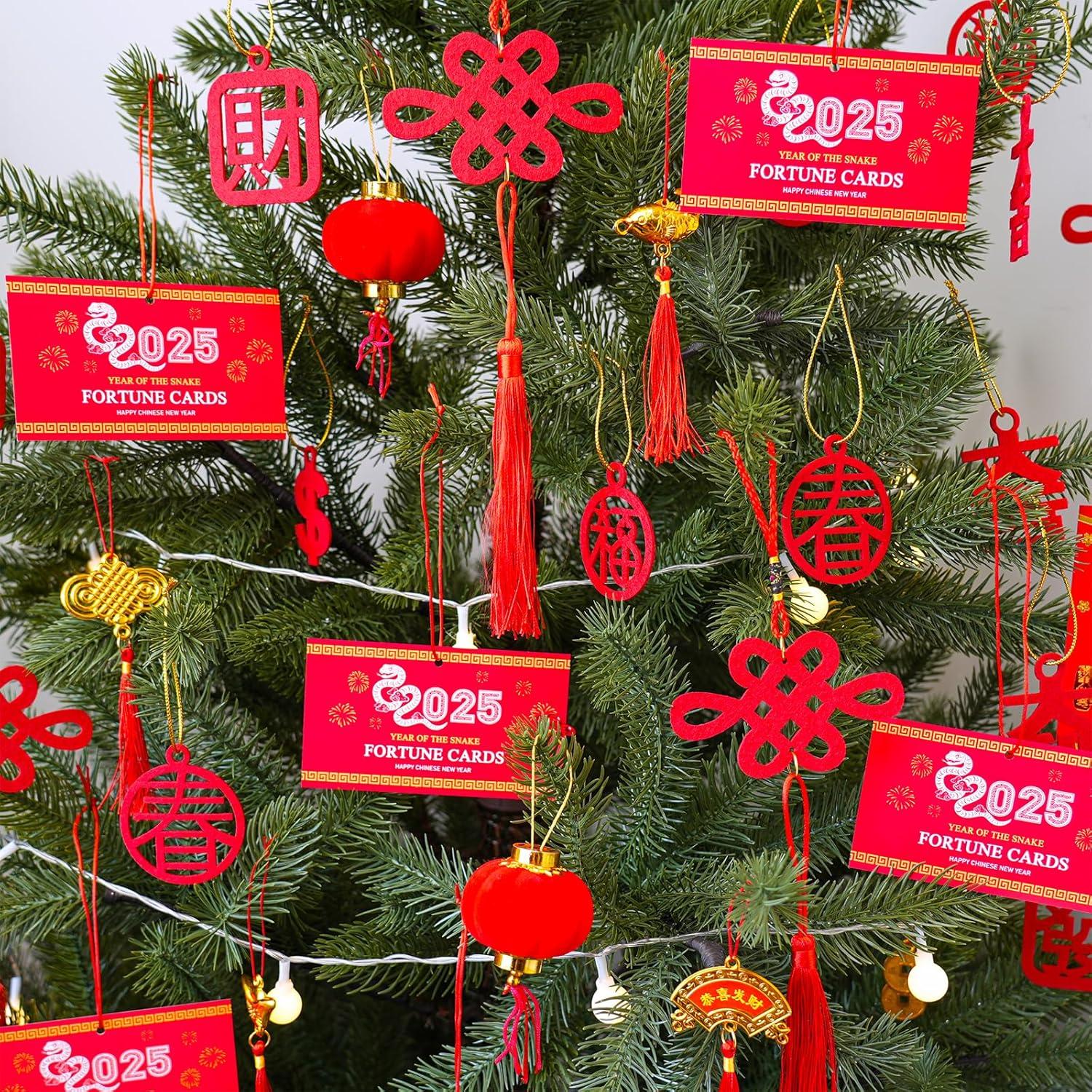 Winlyn 153 Pcs Chinese Lunar New Year Decorations Hanging Good Luck Fortune Ornaments Red Lanterns Lucky Knot Tassels Festival Tree Ornaments for Asian Vietnamese TET 2025 Snake New Year Party Decor