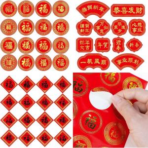 Winlyn 352 Pcs Chinese New Year Stickers Asian Lunar New Year Fu Labels and Chinese Blessing Stickers 2025 Year of The Snake Candy Chocolate Labels for Spring Festival Party Favors New Year Decoration