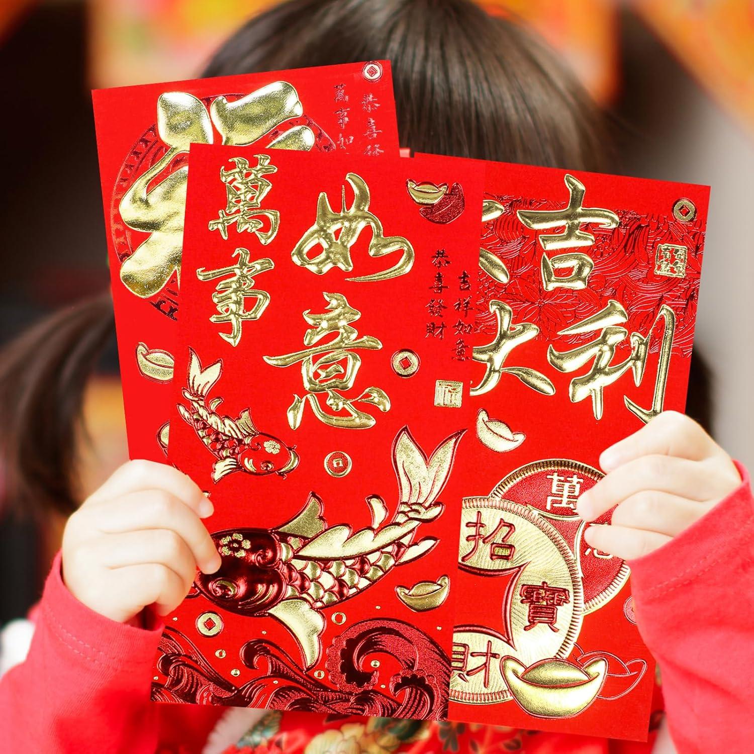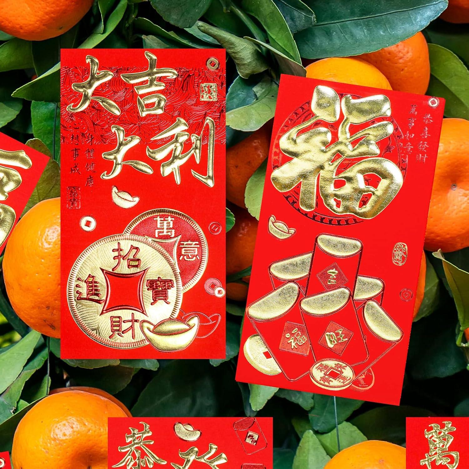 Winlyn 28 Sets Chinese New Year Fortune Cards with Red Envelops Chinese Coins Chinese Stickers Scratch Off Fortune Games Gifts for Kids Chinese Lunar New Year Spring Year of The OX 2021 Party