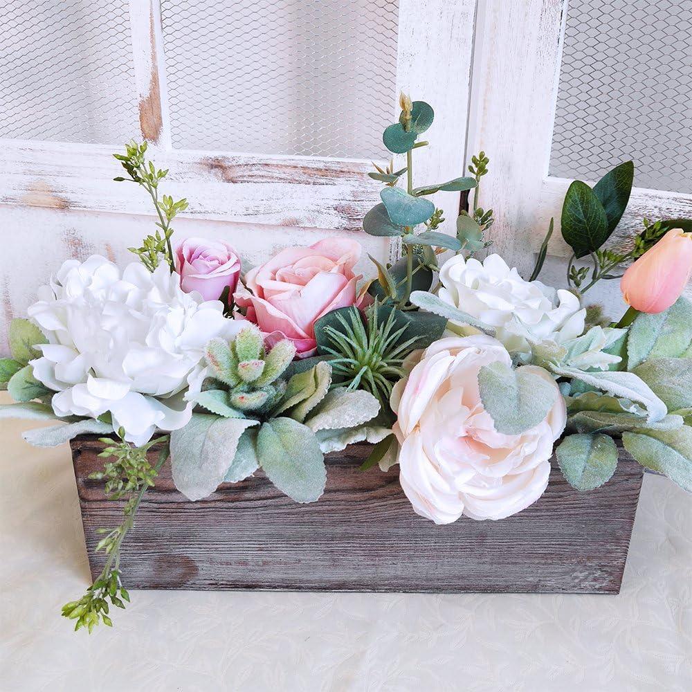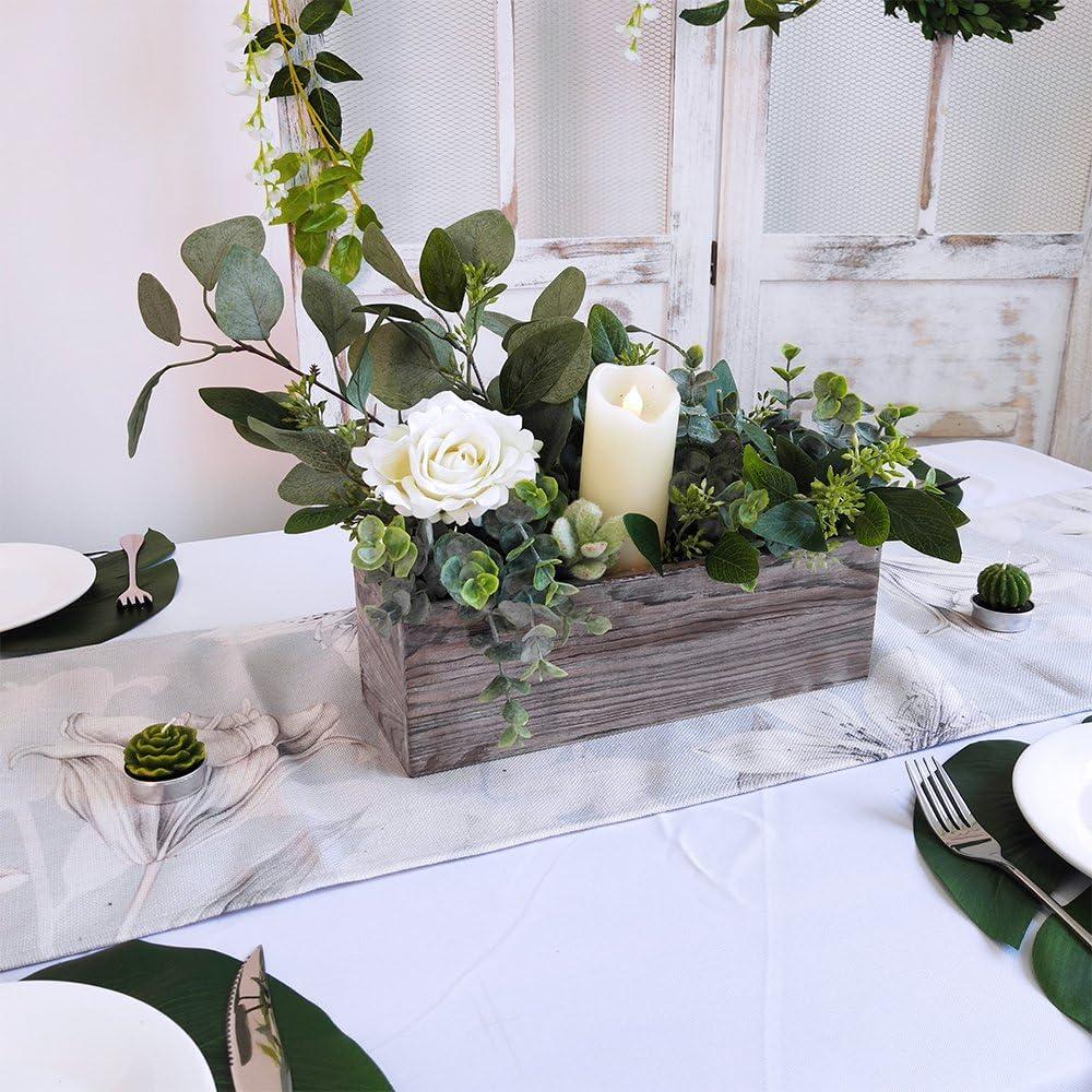 1 Pcs Wood Planter Rectangle Whitewashed Rectangular Decorative Wooden Box with Inner Plastic Box – 17.3″ L x 3.9″ W x 3.9″ H Floral Natural Centerpieces Rustic Wedding Decor