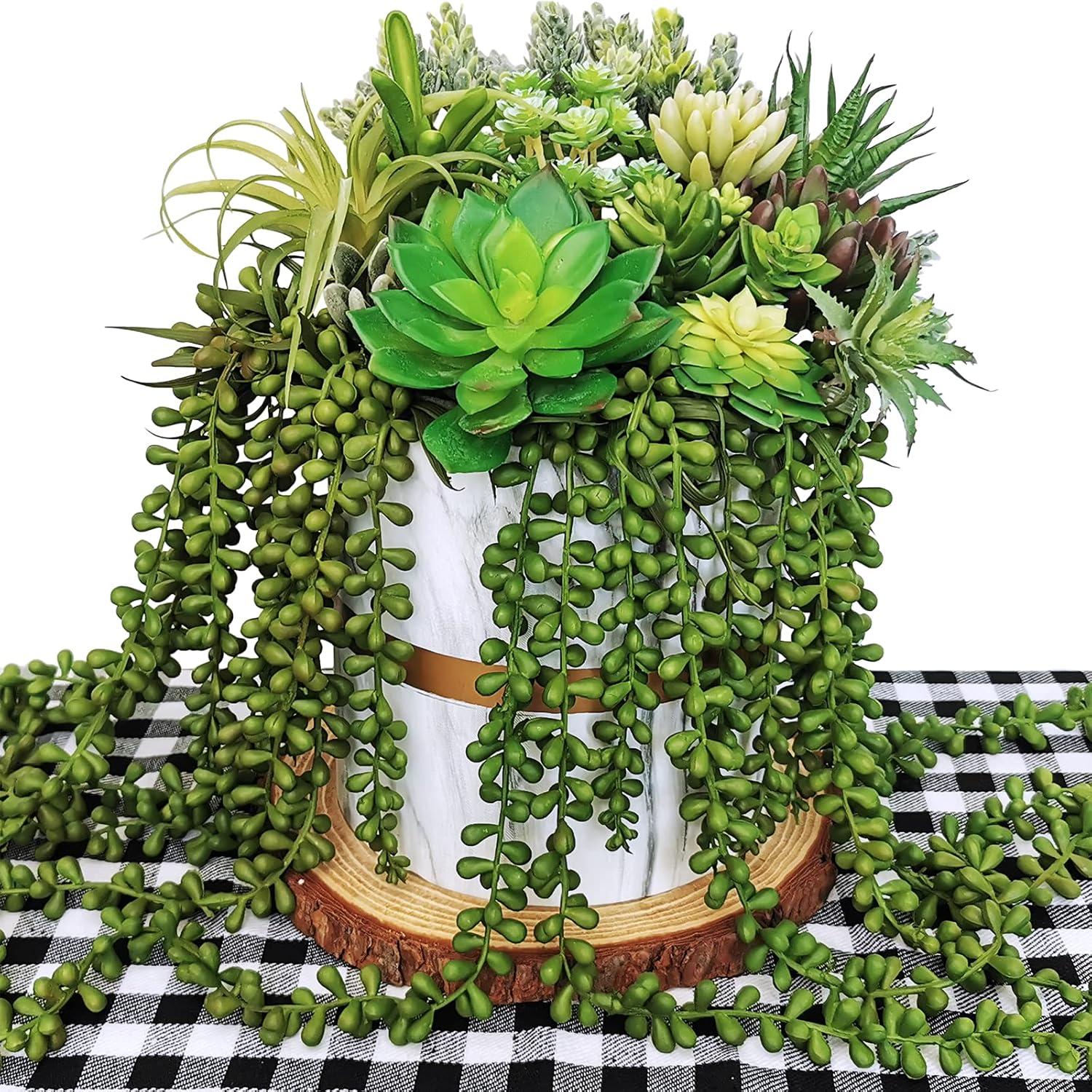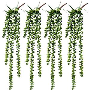 4 pcs Artificial Hanging Succulents Faux Burro’s Tail Picks Trailing String of Pearls Succulent Vines Greenery Sprays 28.7″ Long for Basket Planter Centerpiece Floral Arrangement Indoor Outdoor Decor