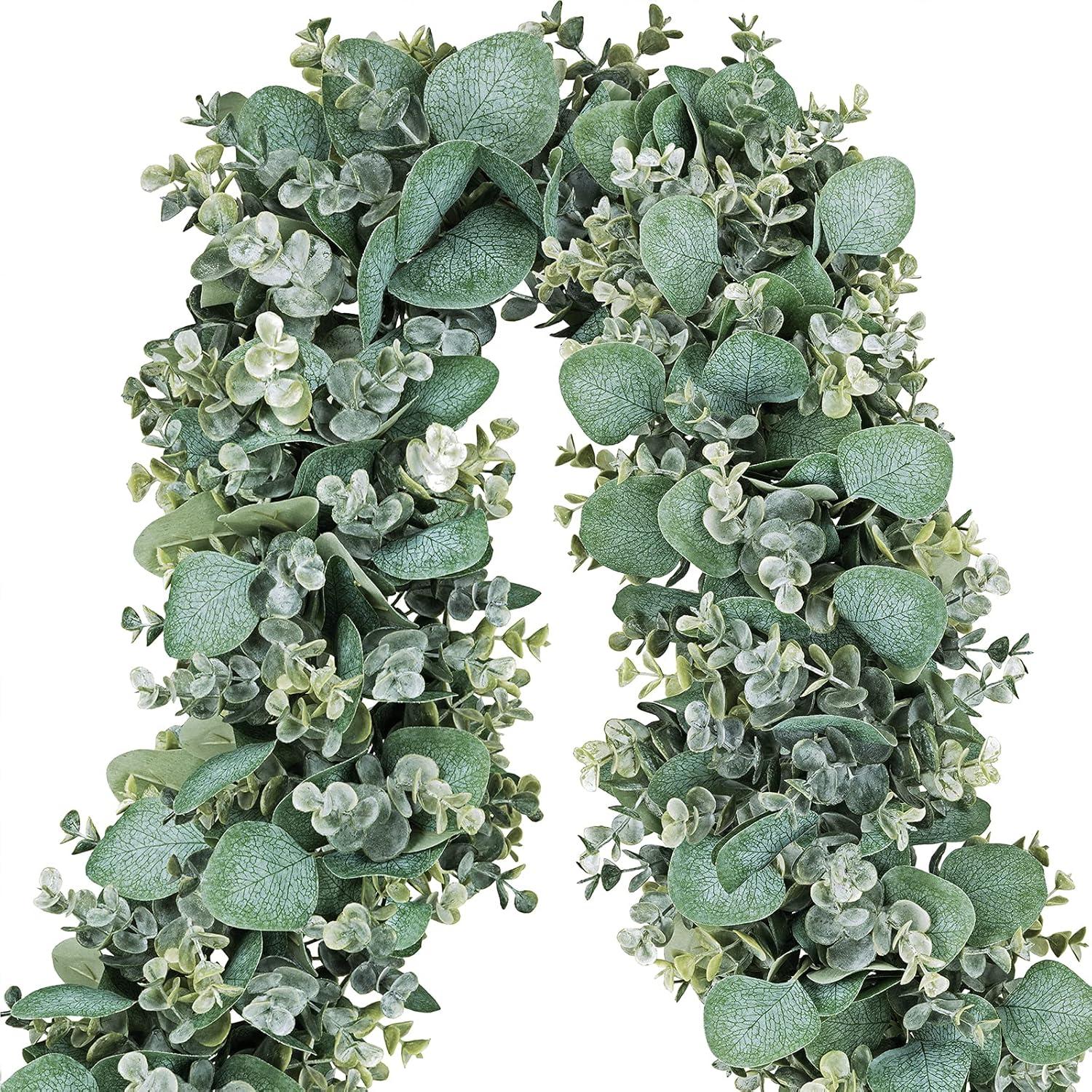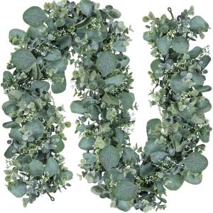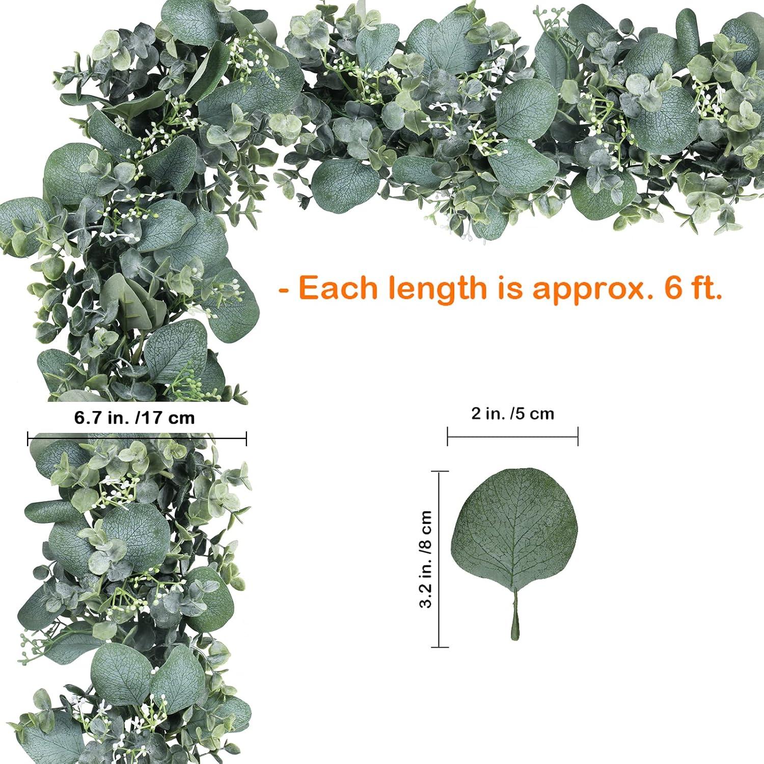 6′ Faux Mixed Eucalyptus Leaves Garland Artificial Silver Dollar Eucalyptus with White Seeds in Gray Green for Farmhouse Wedding Backdrop Table Runner Centerpiece Mantel Indoor Outdoor Greenery Decor
