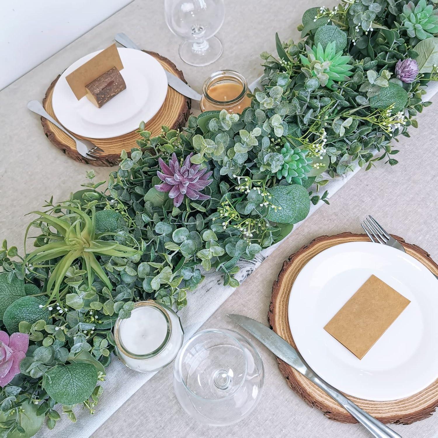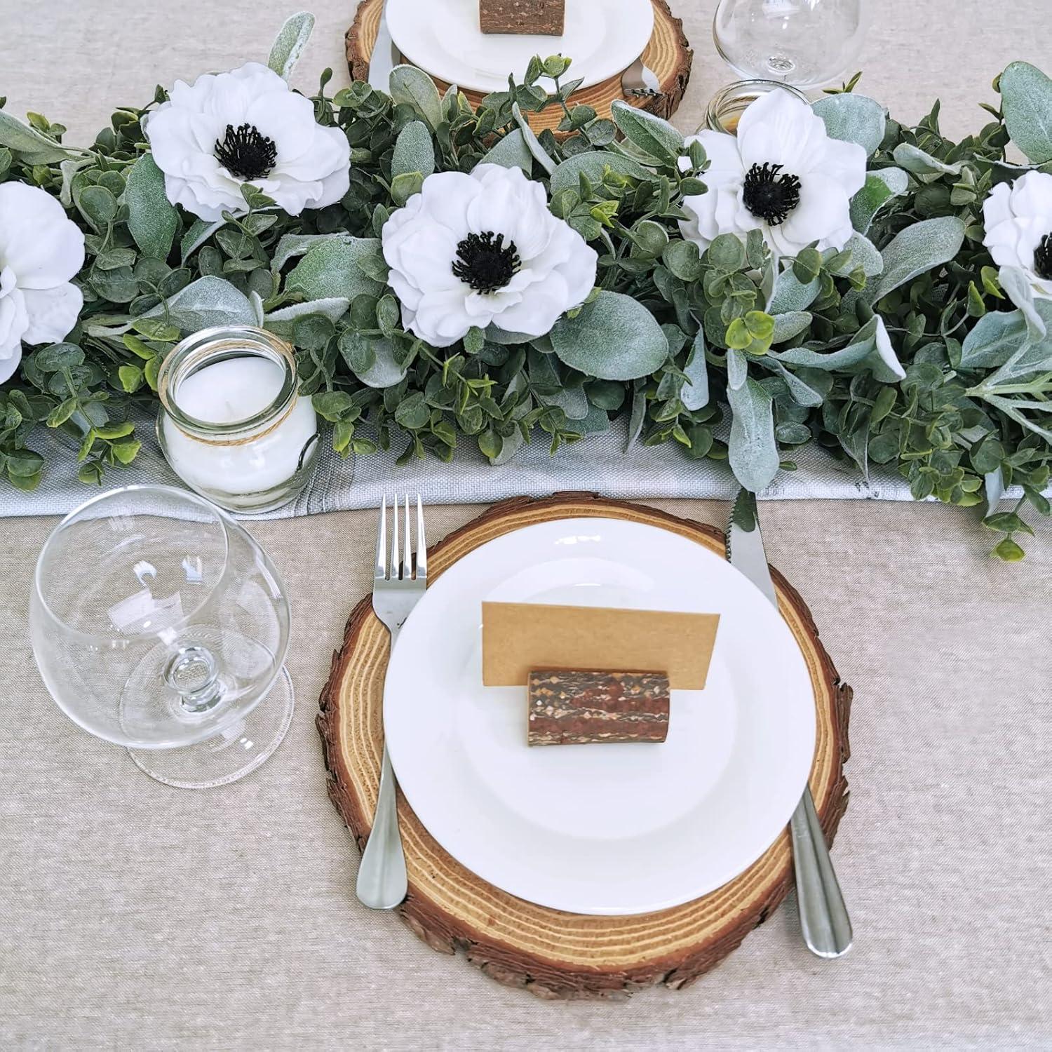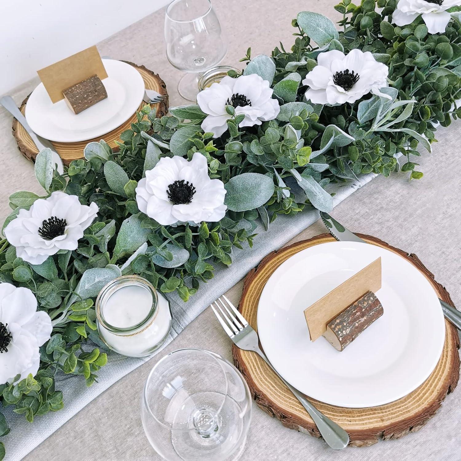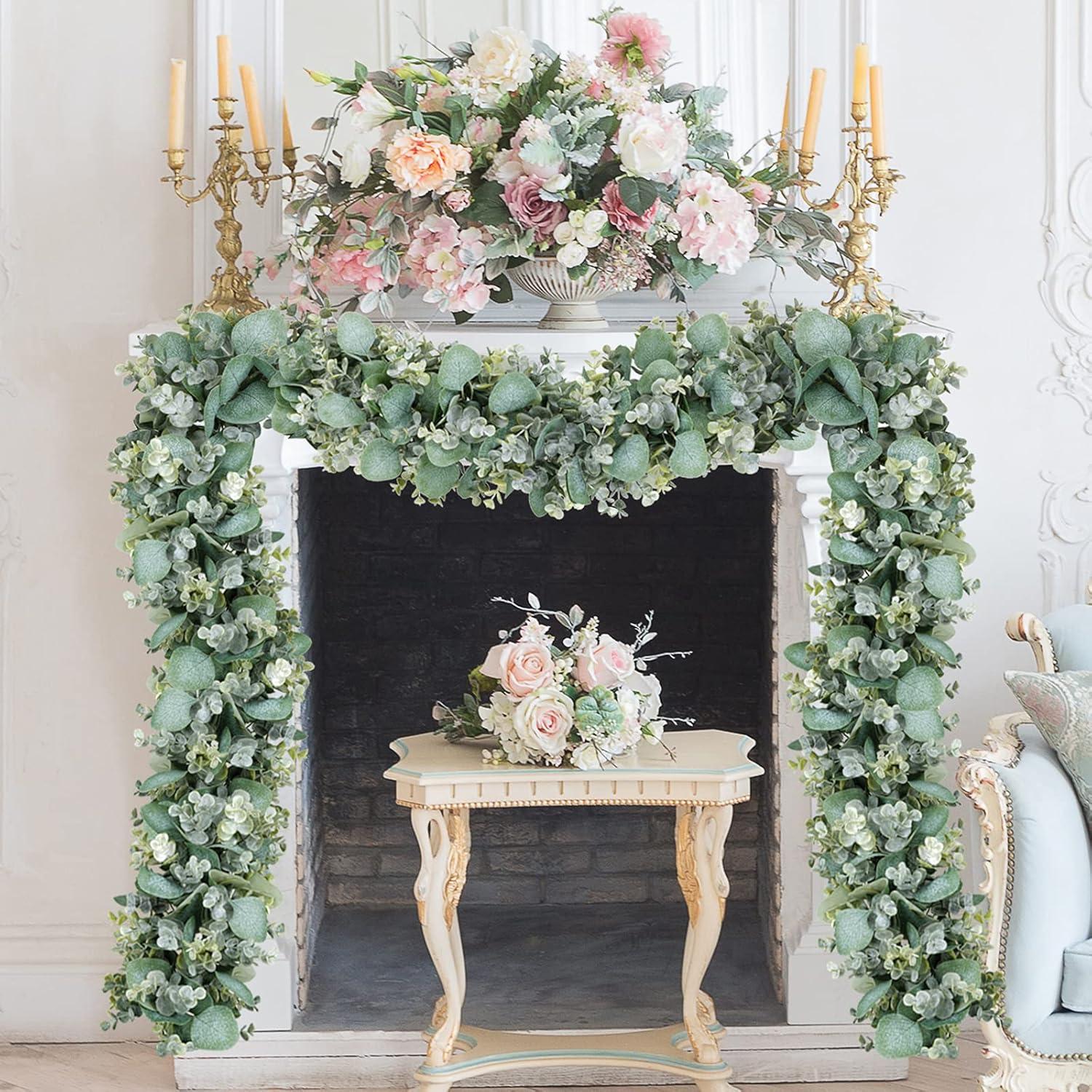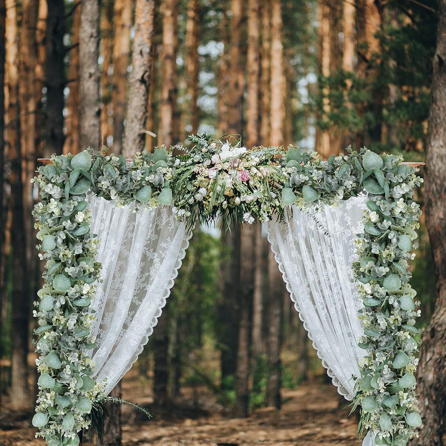 6′ L Faux Mixed Eucalyptus Leaves and Lamb’s Ear Leaves Garland with Artificial White Flower for Farmhouse Wedding Arch Backdrop Table Runner Centerpiece Mantel Indoor Outdoor Greenery Decor