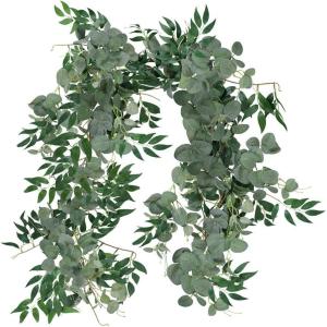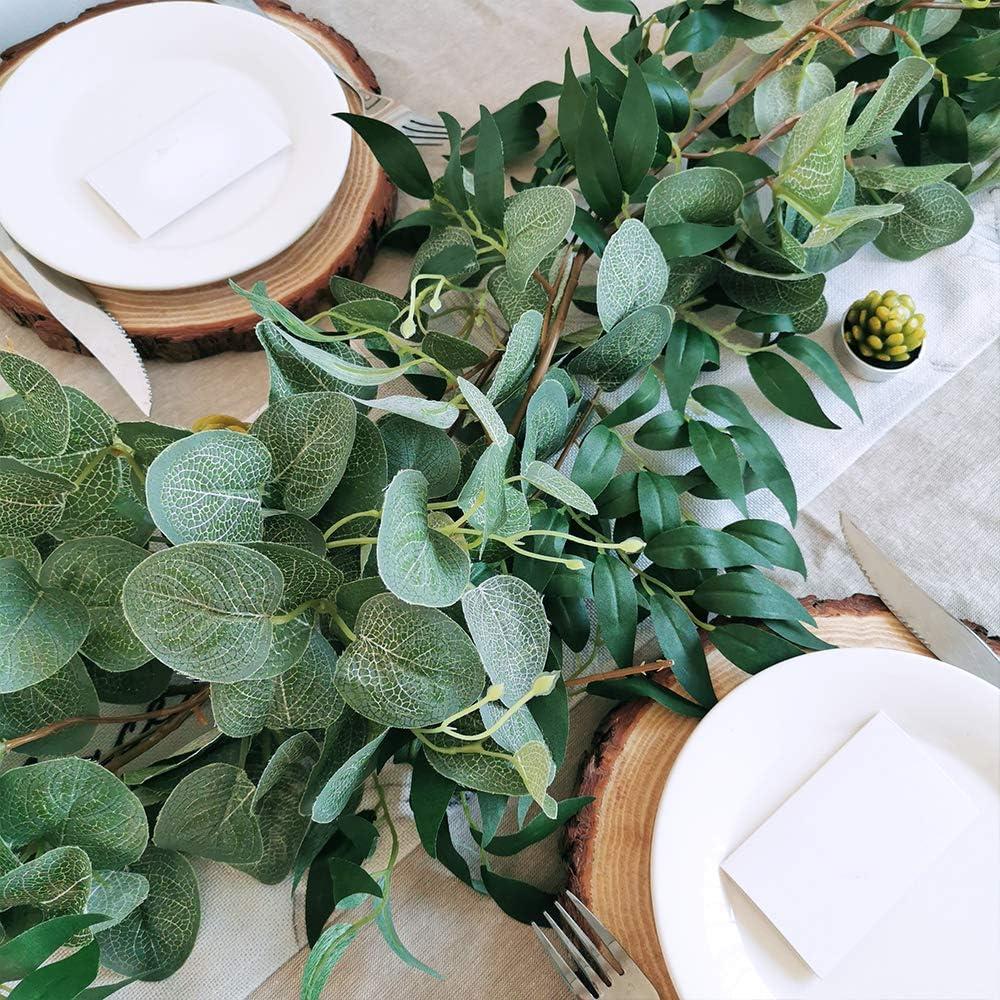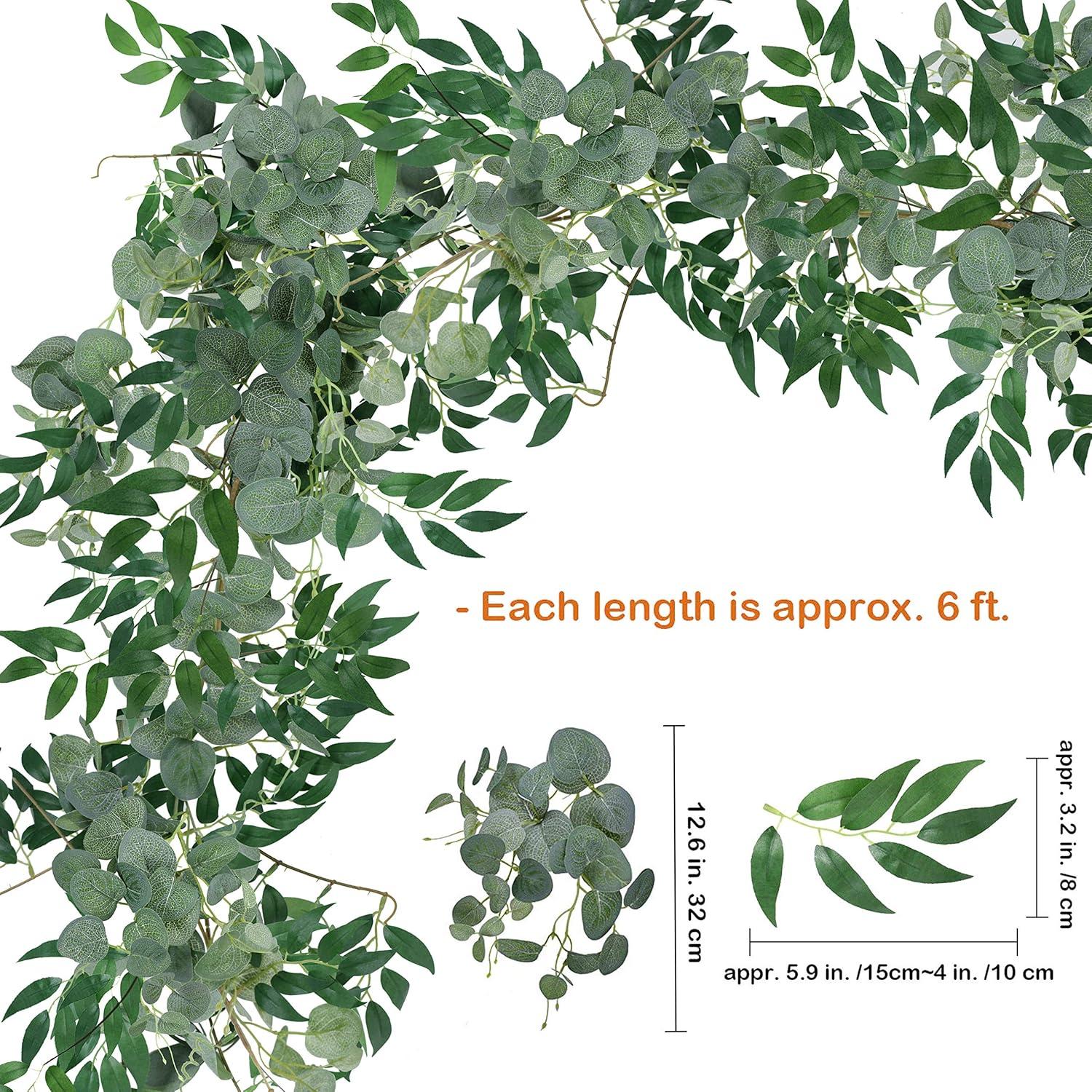 Supla 2 Separate 6’L/Pcs Faux Willow Vines Twigs Leaves and Silver Dollar Eucalyptus Leaves Garland String Wedding Arch Swag Backdrop Garland Doorways Greenery Farmhouse Garland Indoor Outdoor Decor