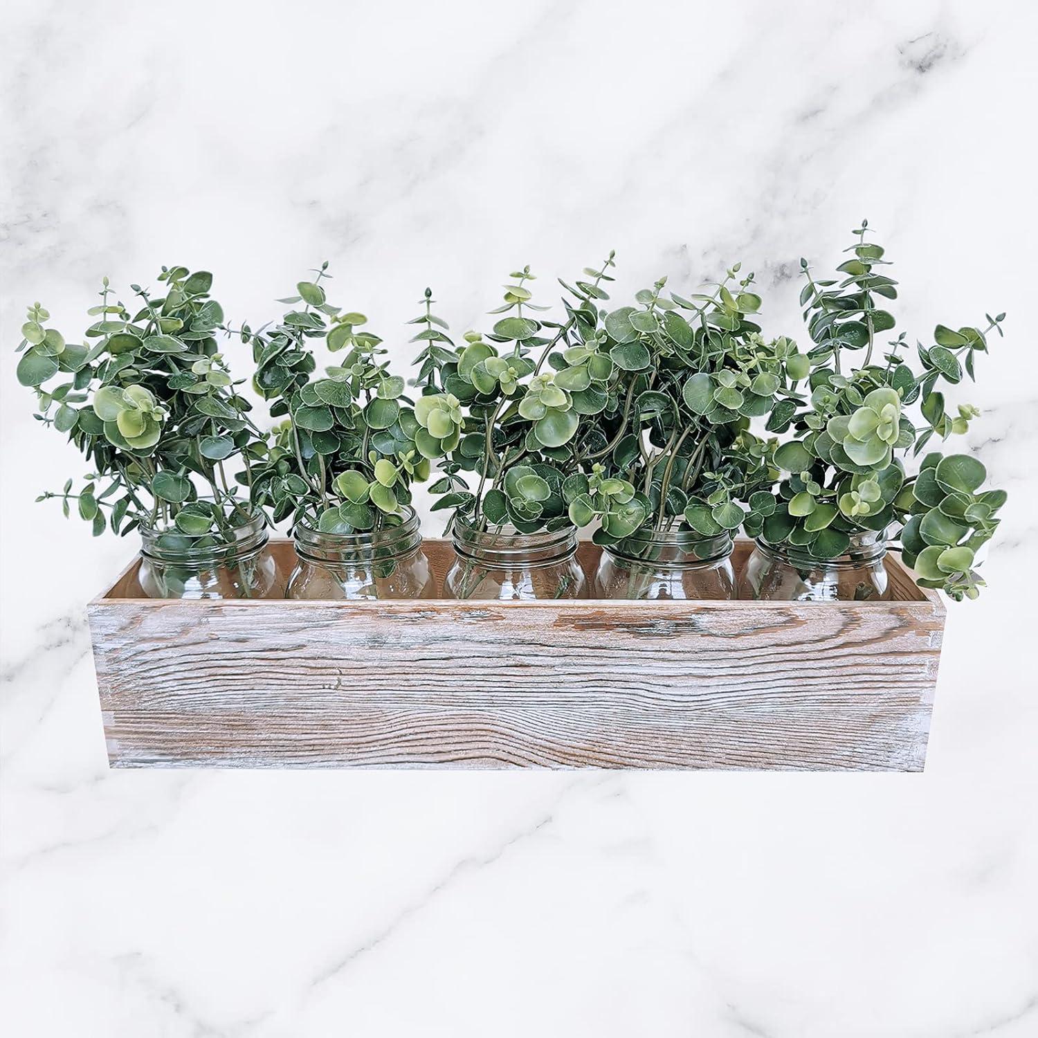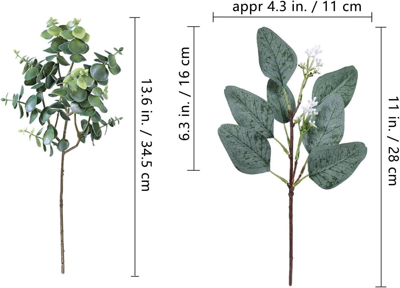 Winlyn 20 Pcs Mixed Artificial Oval Eucalyptus Leaves Bulk with White Seeds Stems and Spray for Vase Floral Wreath Bouquets Wedding Greenery Decoration