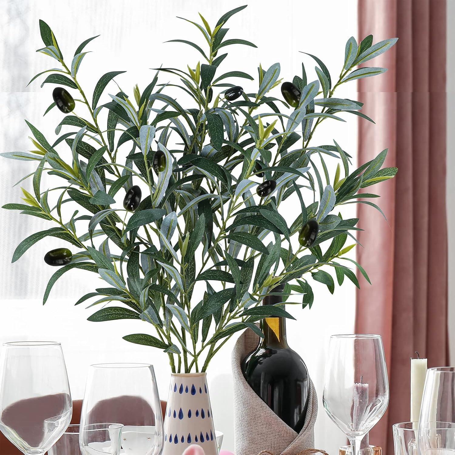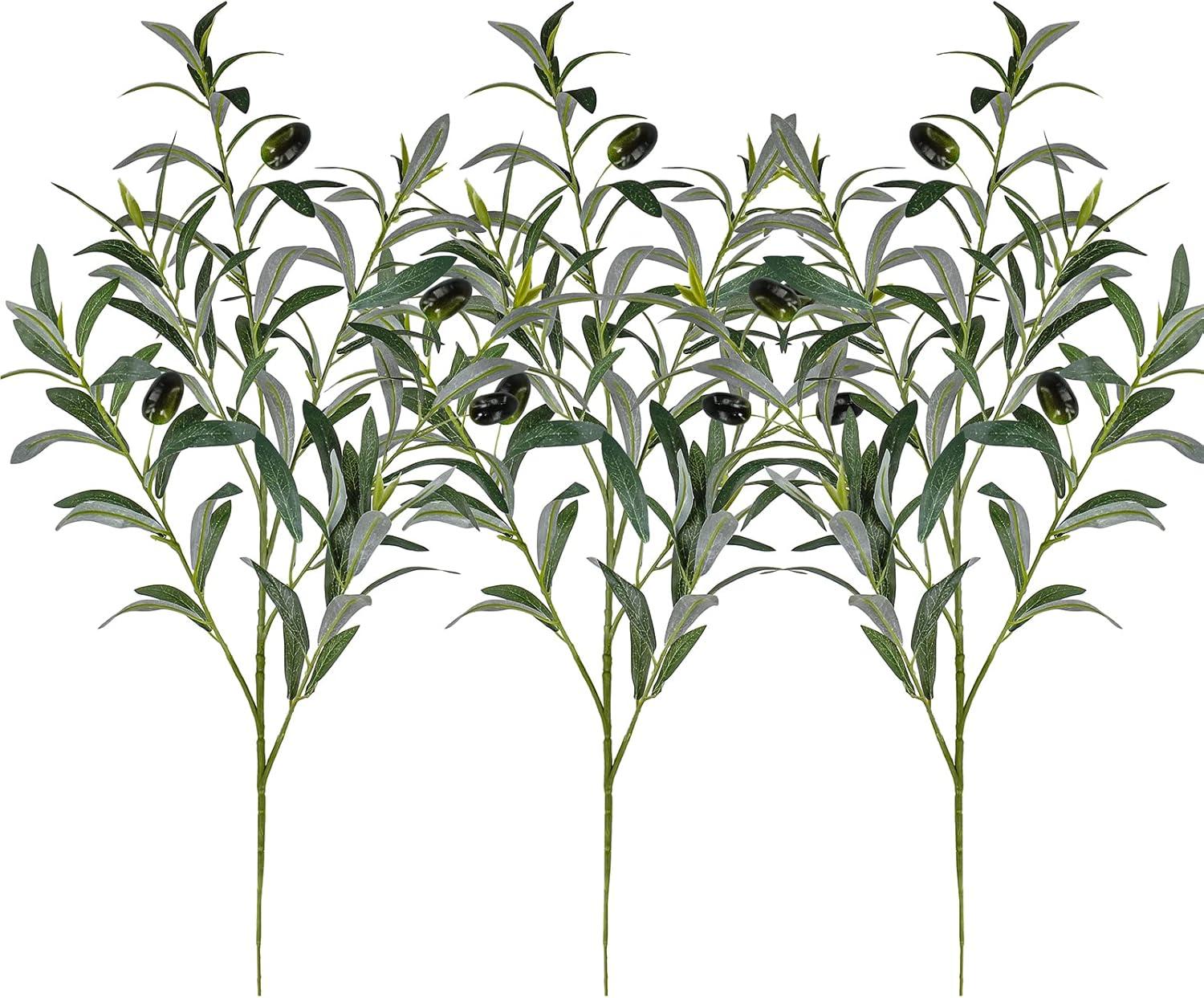 Winlyn 3 Pcs 23.6″ Tall Artificial Olive Branches with 261 Leaves Lifelike Faux Eucalyptus Plant Stems for Floral Arrangements Vases Bouquets Wreaths Centerpieces Wedding Holiday Greenery Home Decor