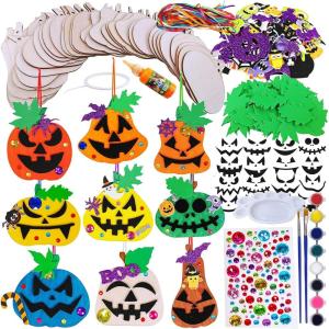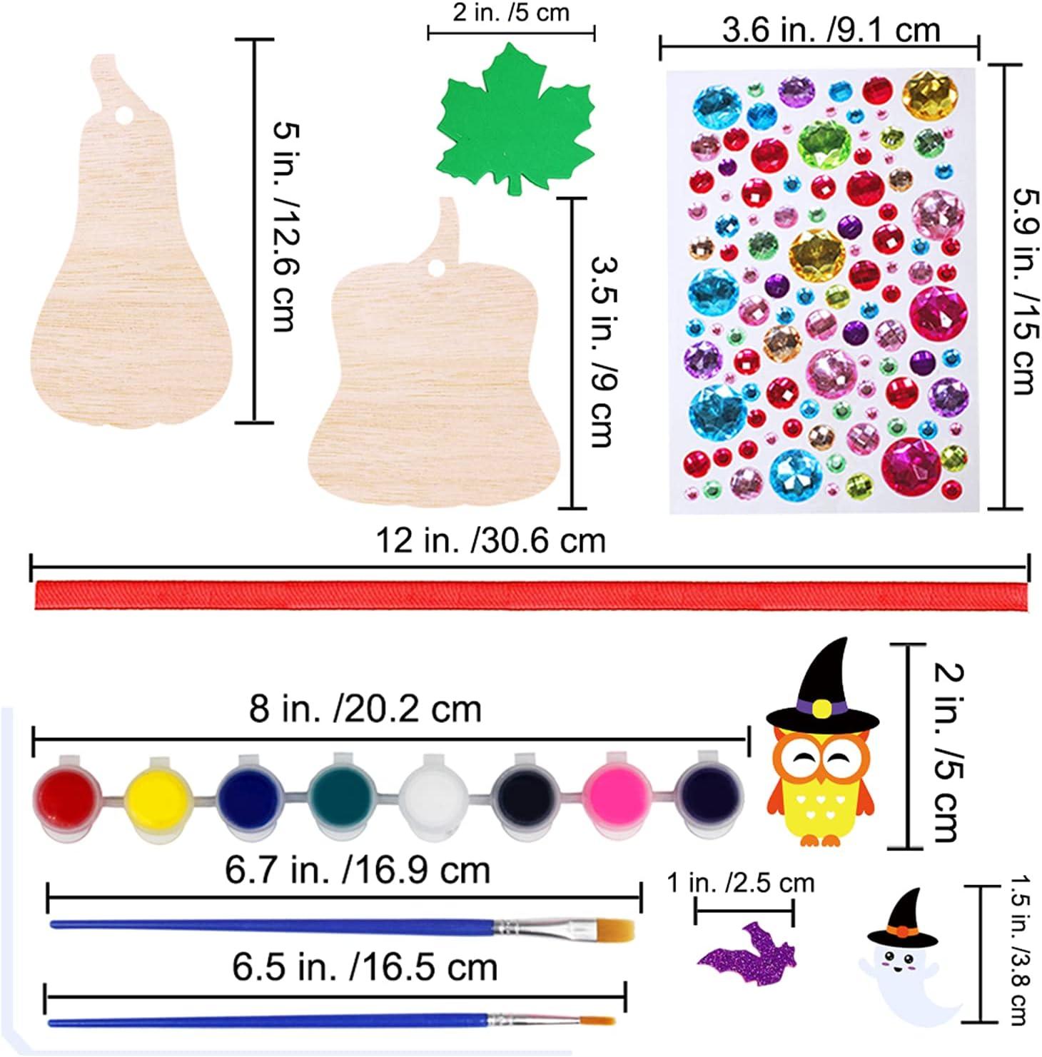 Winlyn 63 Sets Halloween Craft Kits Fall Crafts DIY Wooden Pumpkin Ornaments Decorations Art Sets Unfinished Wood Pumpkins Halloween Stickers for Kids Art Project Home Classroom Party Activities