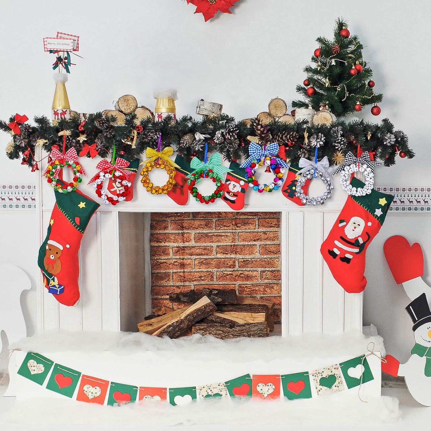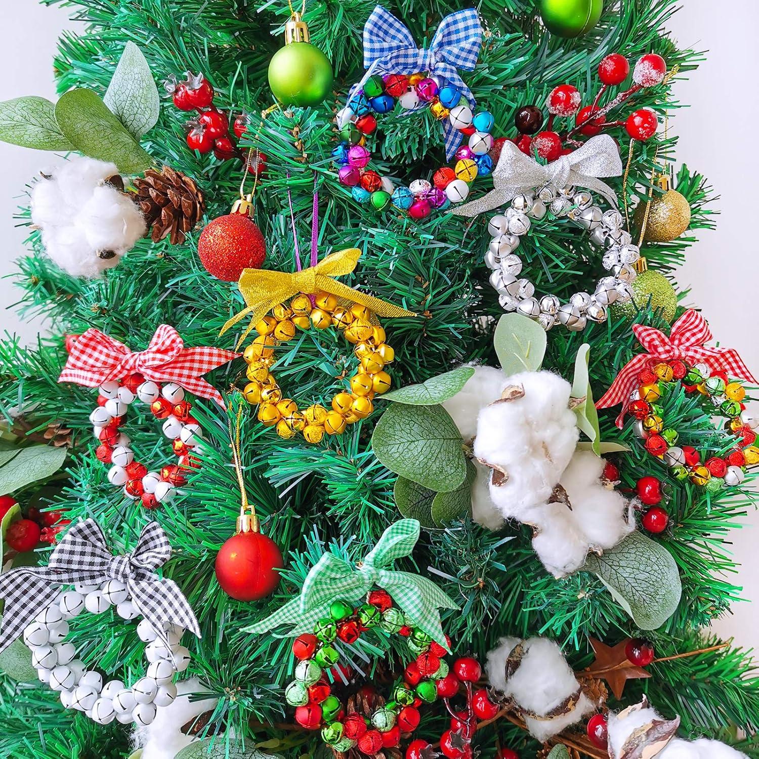 14 Sets Wreath Tree Ornaments Craft Kit with Ribbons, Bows and Bells Assortment for Kids Holiday Winter Bracelets and Necklaces