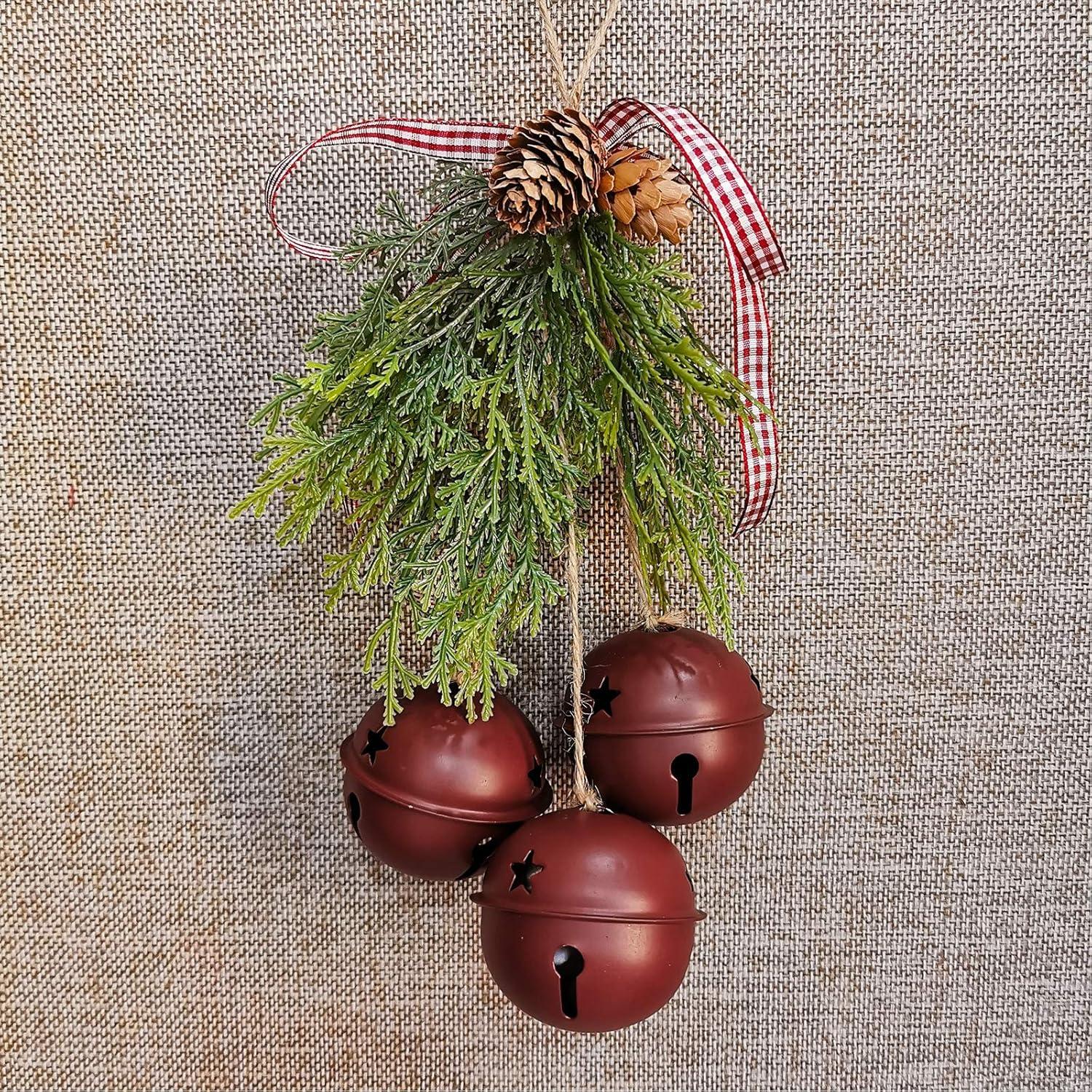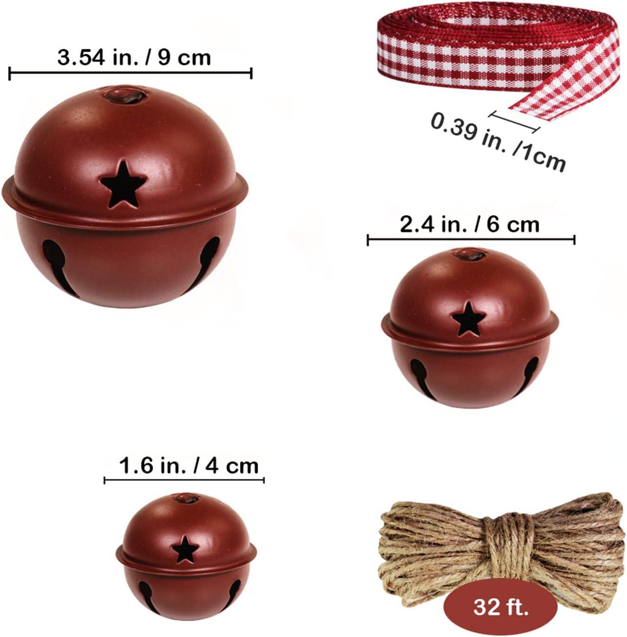 30 Pcs Christmas Metal Sleigh Bells Rustic Burgundy Jingle Bells with Star Cutouts Rustic Craft Bells 1.6″ 2.4″ 3.5″ for Christmas Tree Wreath Garland Ornaments Holiday DIY Decorations