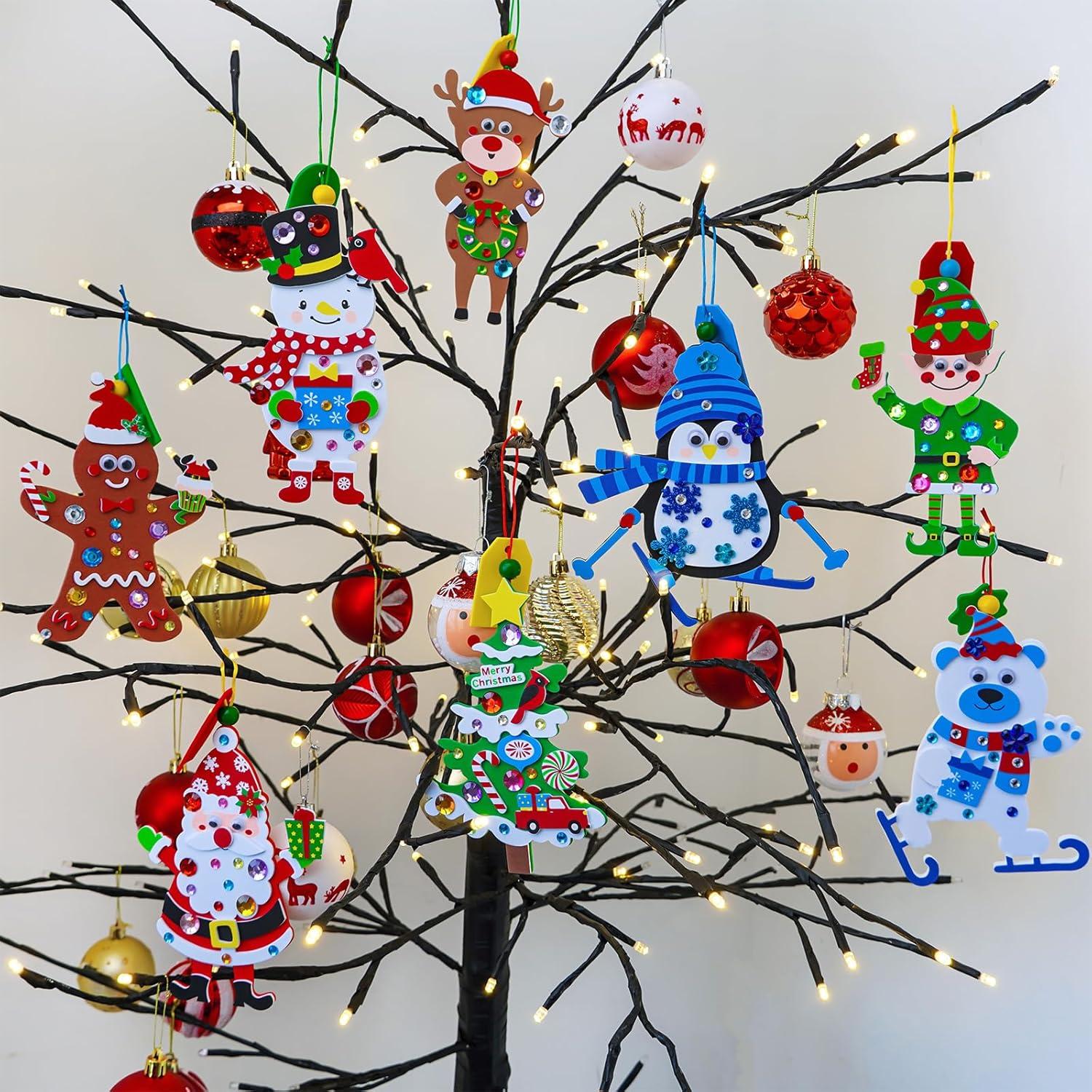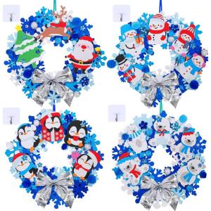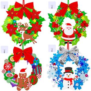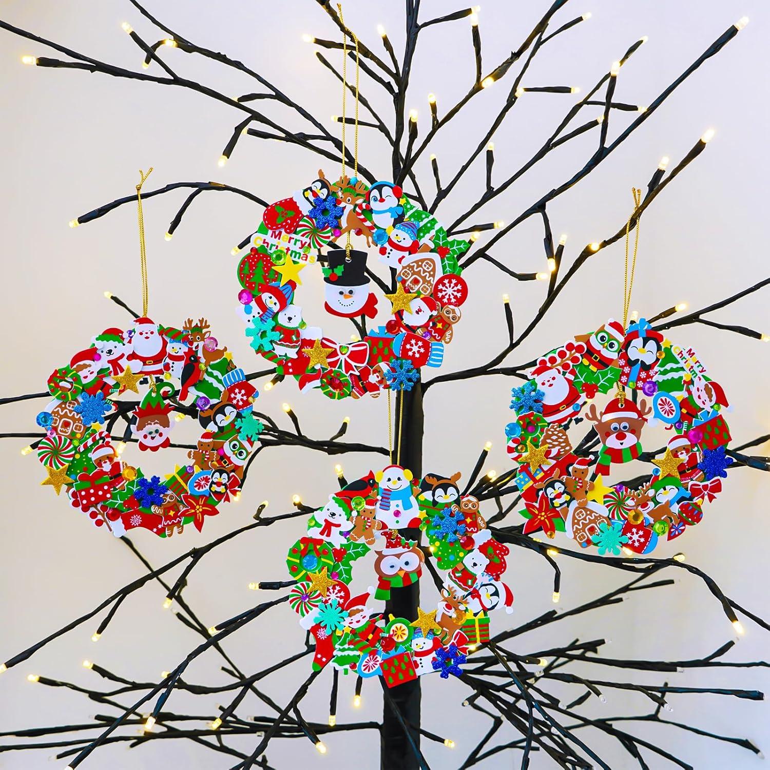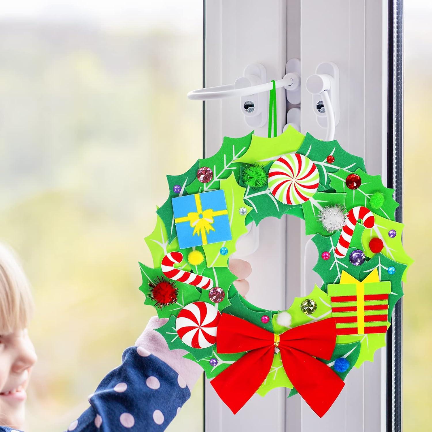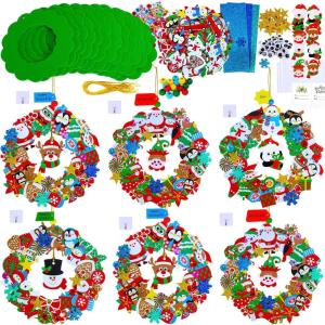Winlyn 12 Set Christmas Craft Kits DIY Christmas Wreath Ornaments Decorations Art Sets Snowman Santa Penguin Holly Leaf Foam Stickers Arts and Crafts for Kids Holiday Classroom Activities