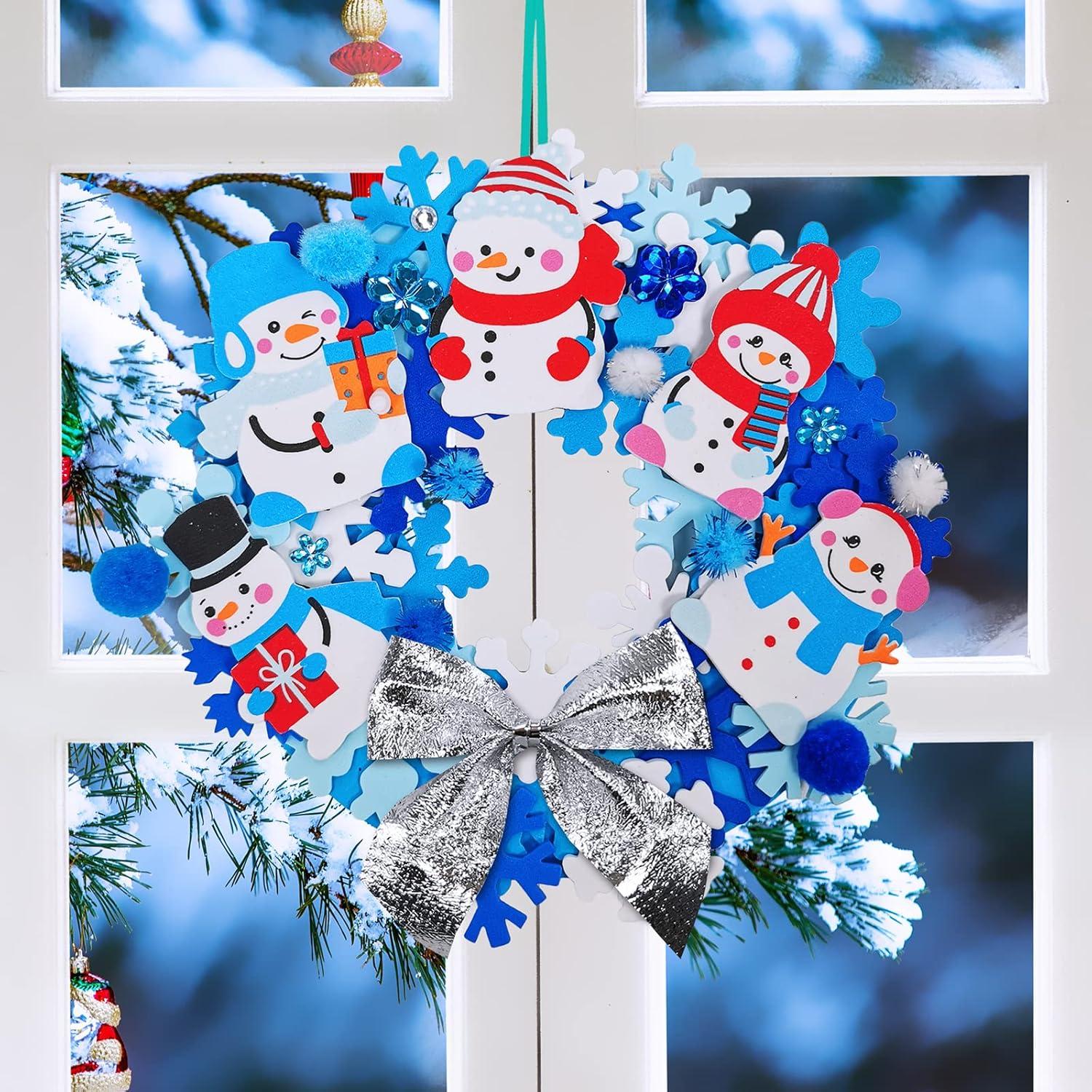 Winlyn 12 Sets Christmas Craft Kits Holiday Crafts DIY Christmas Wreath Ornaments Decorations Art Sets Xmas Snowmen Snowflake Festive Winter Foam Stickers Arts and Crafts for Kids Classroom Activities