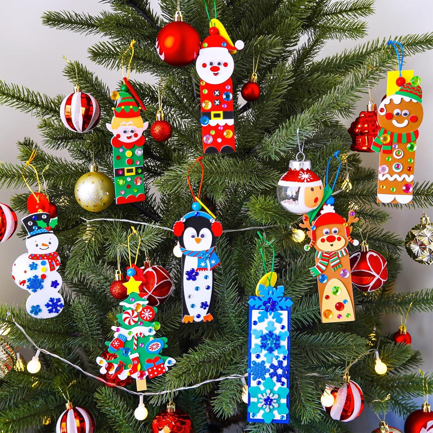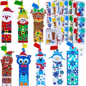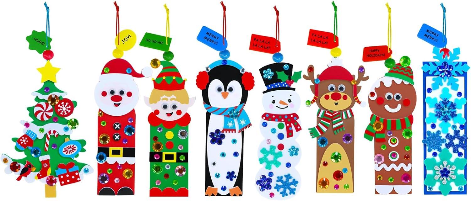 Winlyn 24 Sets Christmas Craft Kits Winter Crafts DIY Christmas Ornaments Bookmarks Decorations Festive Foam Stickers Christmas Arts and Crafts for Kids Holiday Classroom Art Activities Party Favors