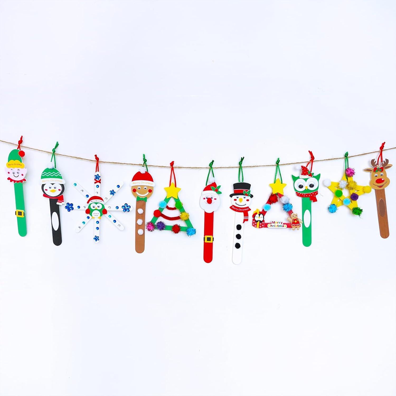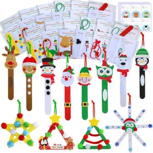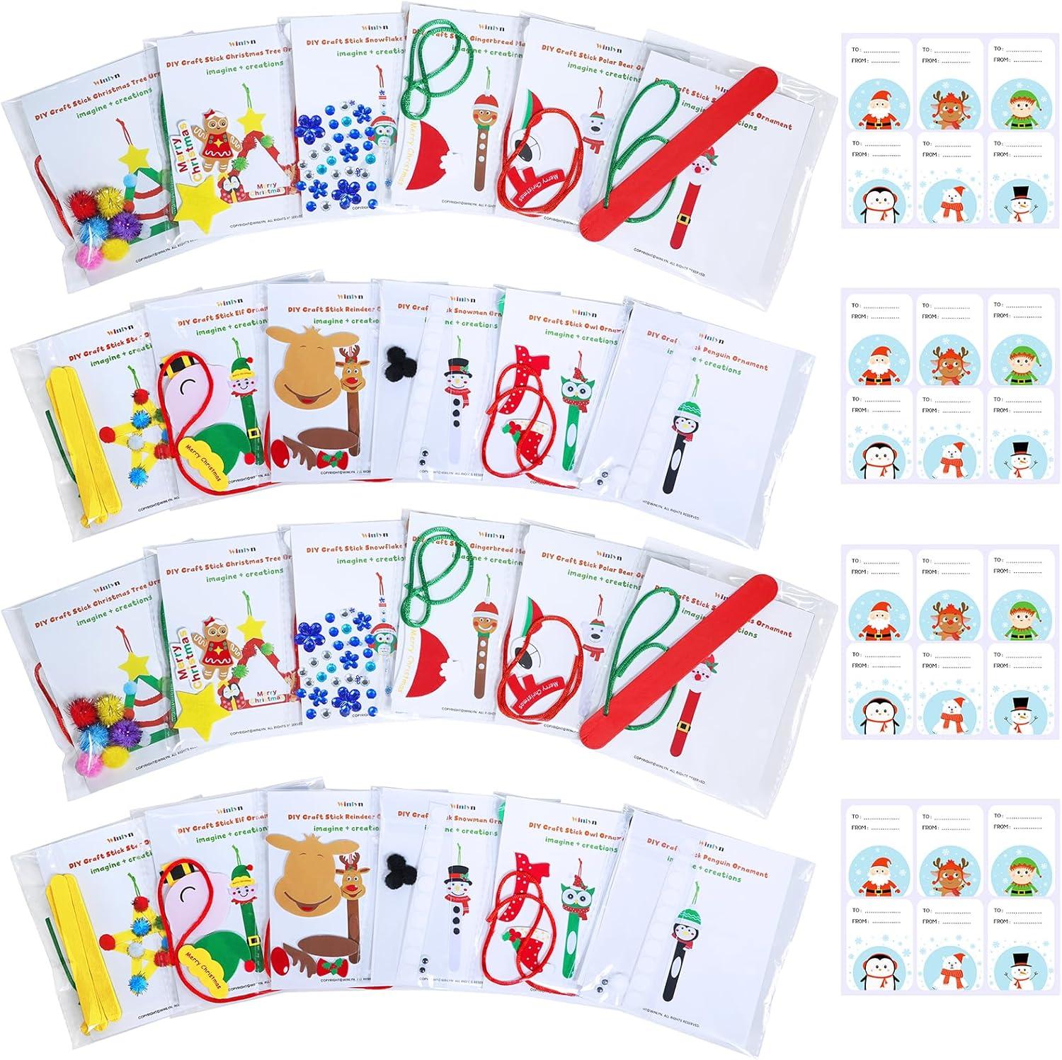Winlyn 24 Sets Christmas Craft Kits Popsicle Stick Christmas Ornaments Winter Crafts DIY Craft Stick Santa Snowman Elf Reindeer Ornaments Art Sets for Kids Holiday Classroom Activities Party Favors