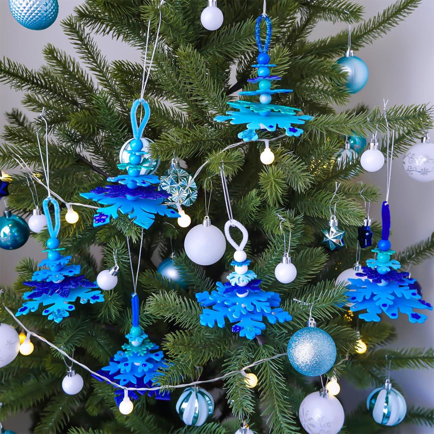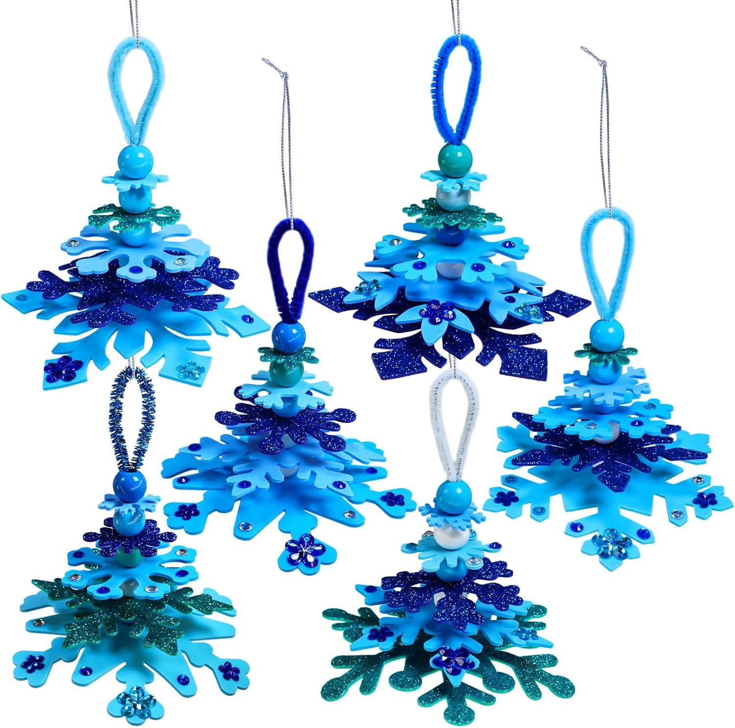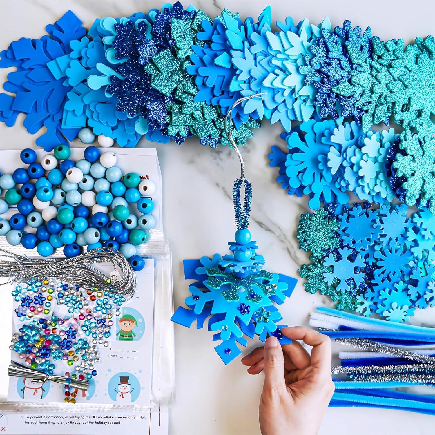 Winlyn 24 Sets Christmas Craft Kits Winter Crafts DIY 3D Snowflake Tree Ornaments Decorations Art Sets Foam Snowflake Christmas Arts and Crafts for Kids Holiday Classroom Art Activities Party Favors