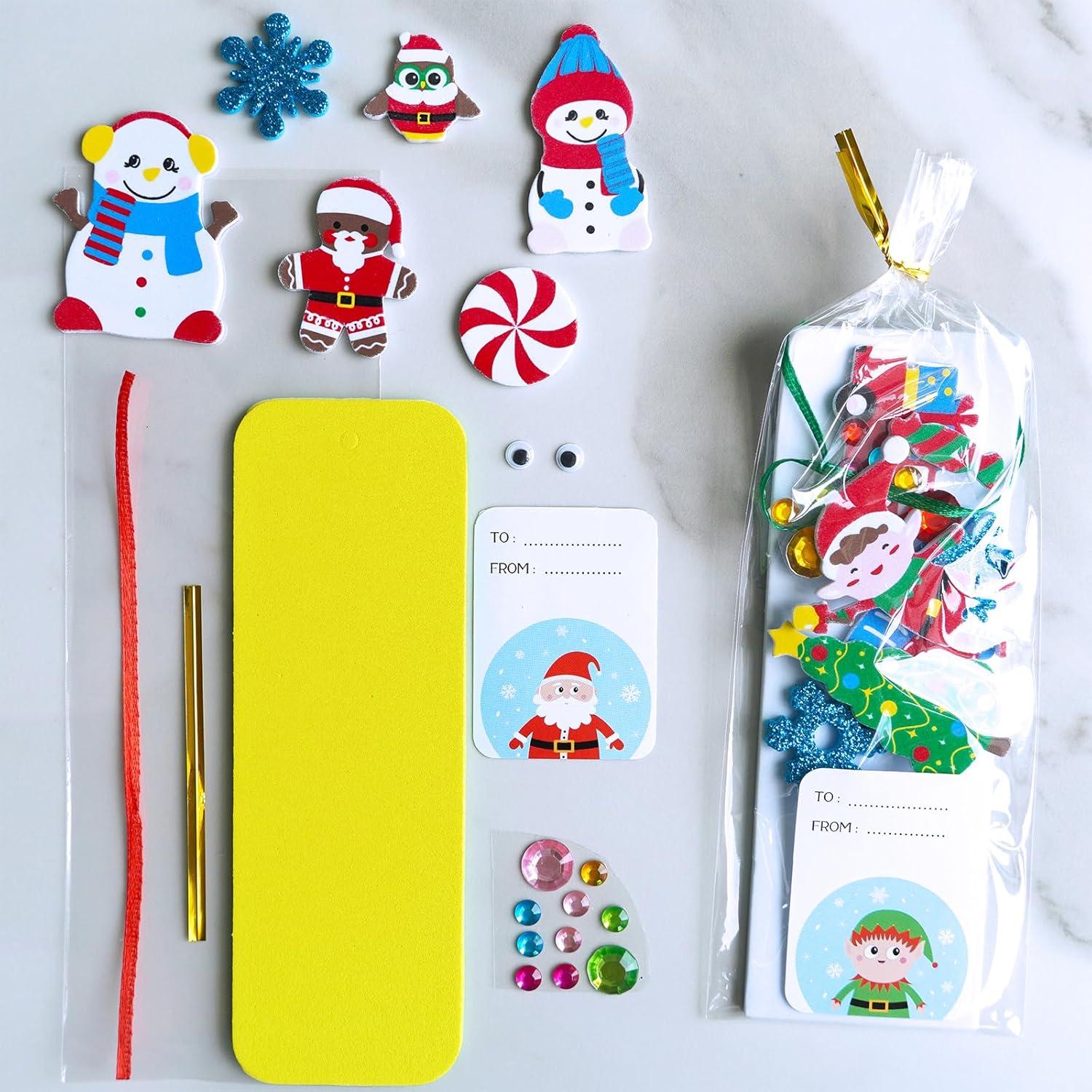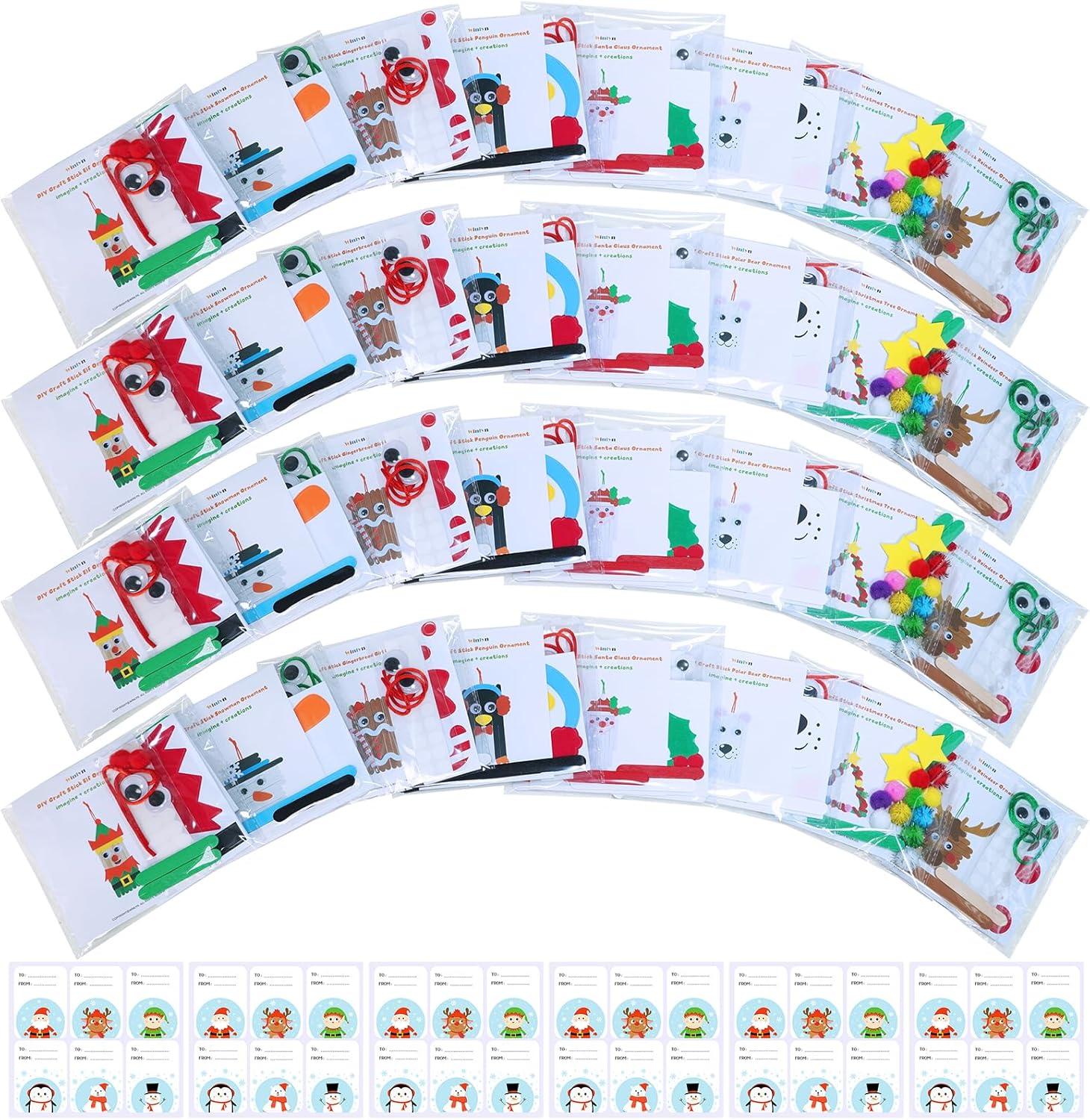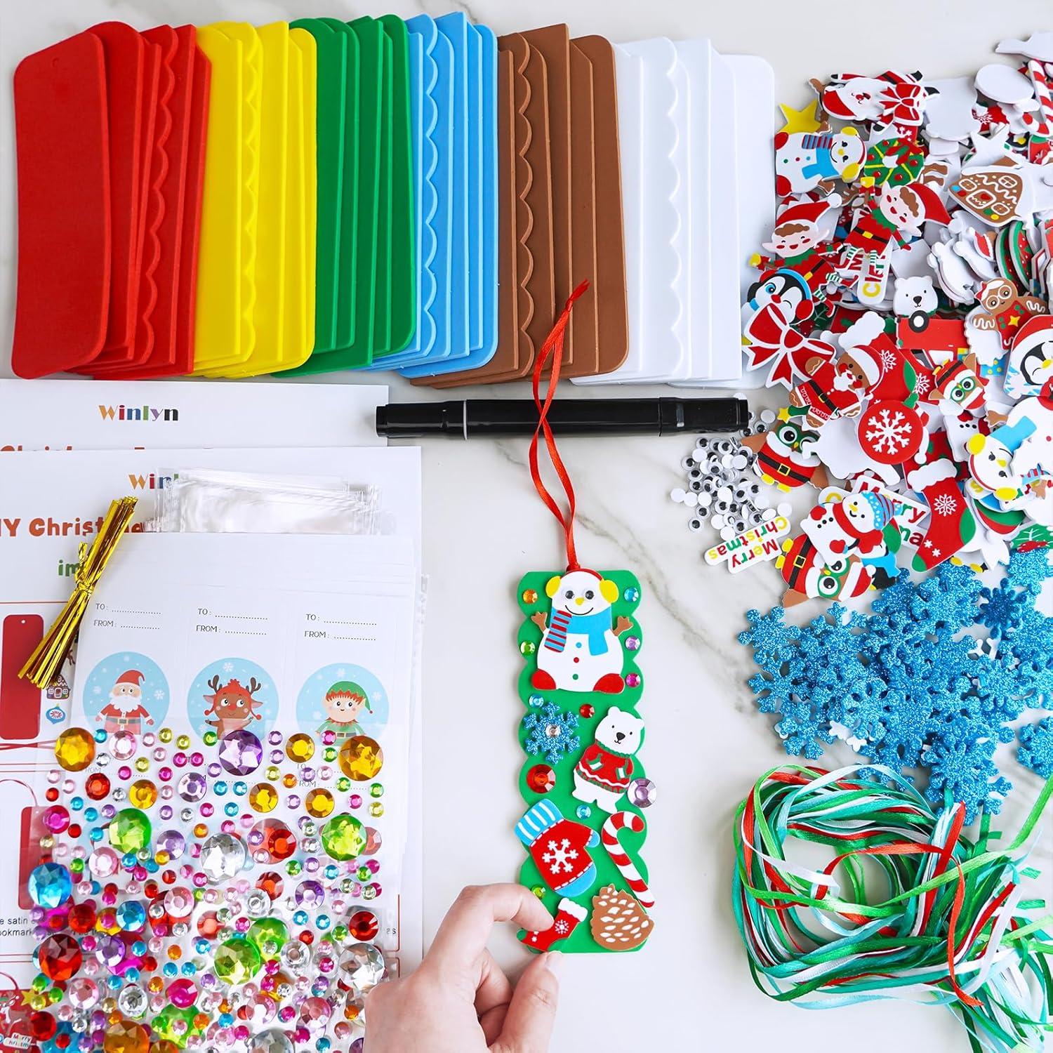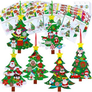 Winlyn 48 Sets Christmas Tree Ornaments Decorations Art Sets DIY Christmas Craft Kits Winter Crafts Pine Tree Snowman Snowflake Santa Xmas Stickers for Kids Holiday Classroom Activities Party Favors