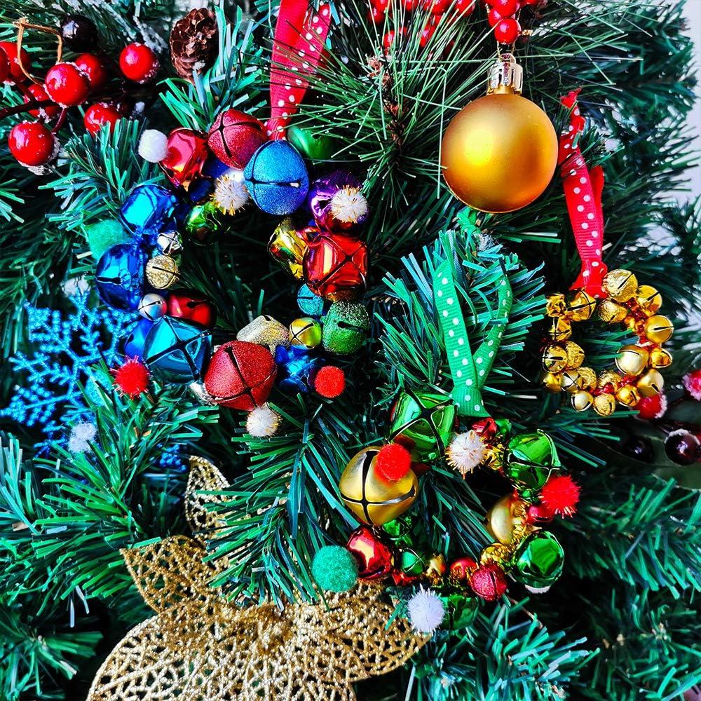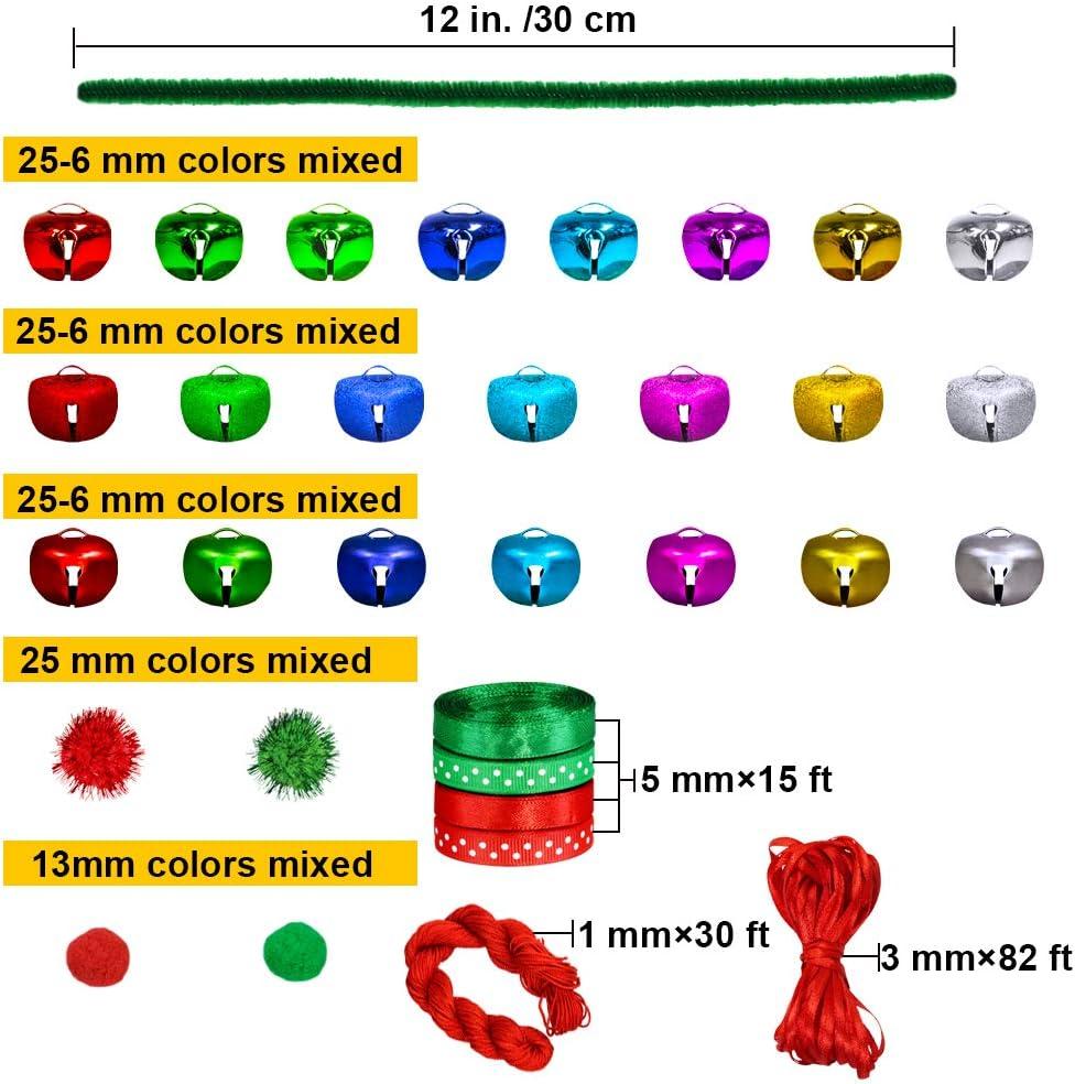Winlyn 475 Set Christmas Jingle Bell Wreath Christmas Tree Ornaments Craft Kit Jingle Bell Metallic Chenille Stems Glitter Pom-Poms Ribbon Assortment for Kids Holiday Xmas Bracelets Necklaces Artwork