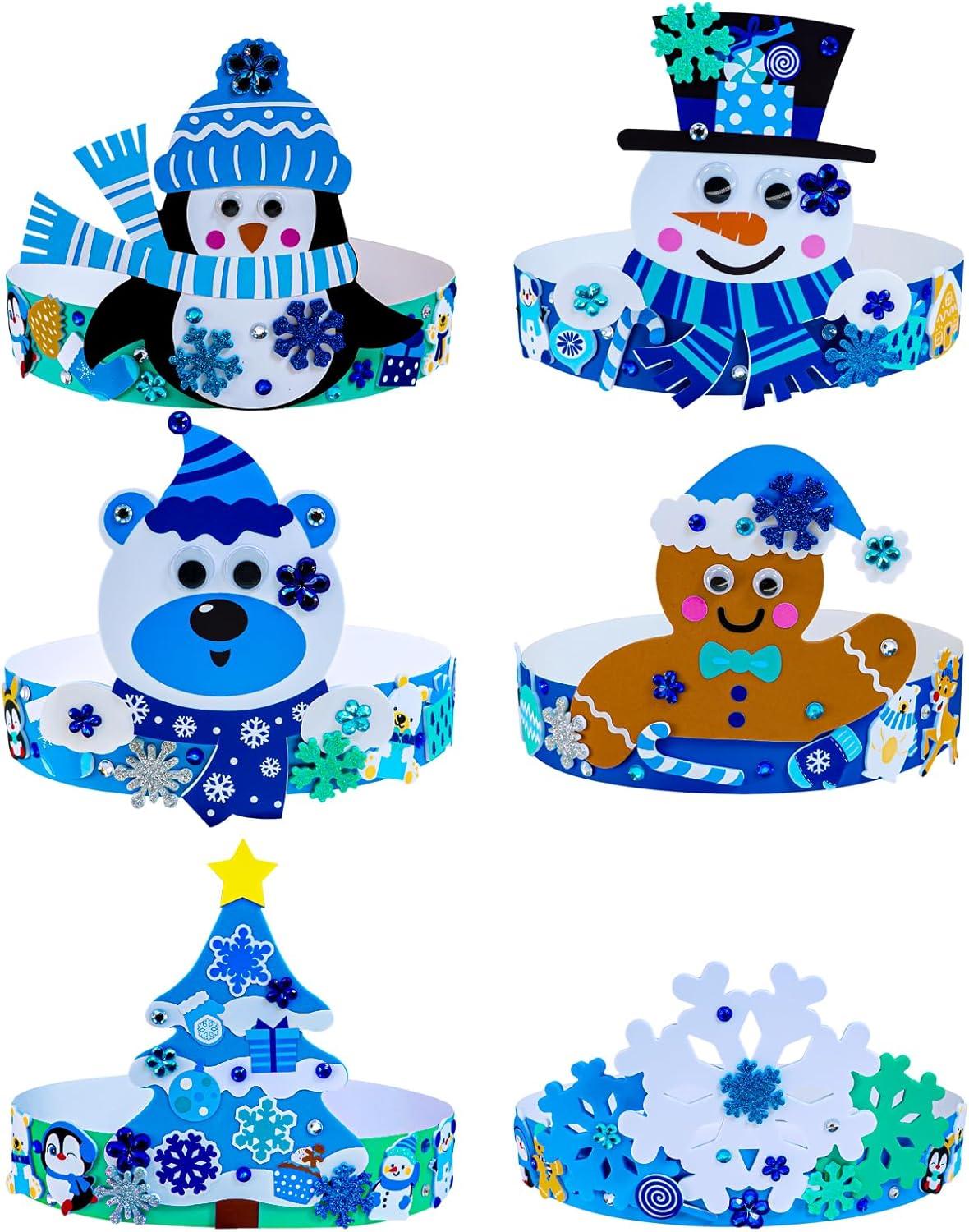 Winlyn Winter Craft Kits: Christmas DIY Holiday Headbands – Snowflake, Snowman, Penguin Foam Stickers – Kids Art & Party Favors