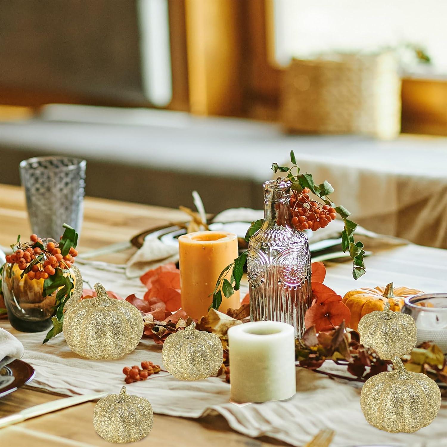 7. Focal Point for Events: Use the glitter pumpkin decor as a centerpiece for a fall wedding, harvest theme party, Thanksgiving, Halloween, or Christmas, drawing attention and setting the tone for the celebration.