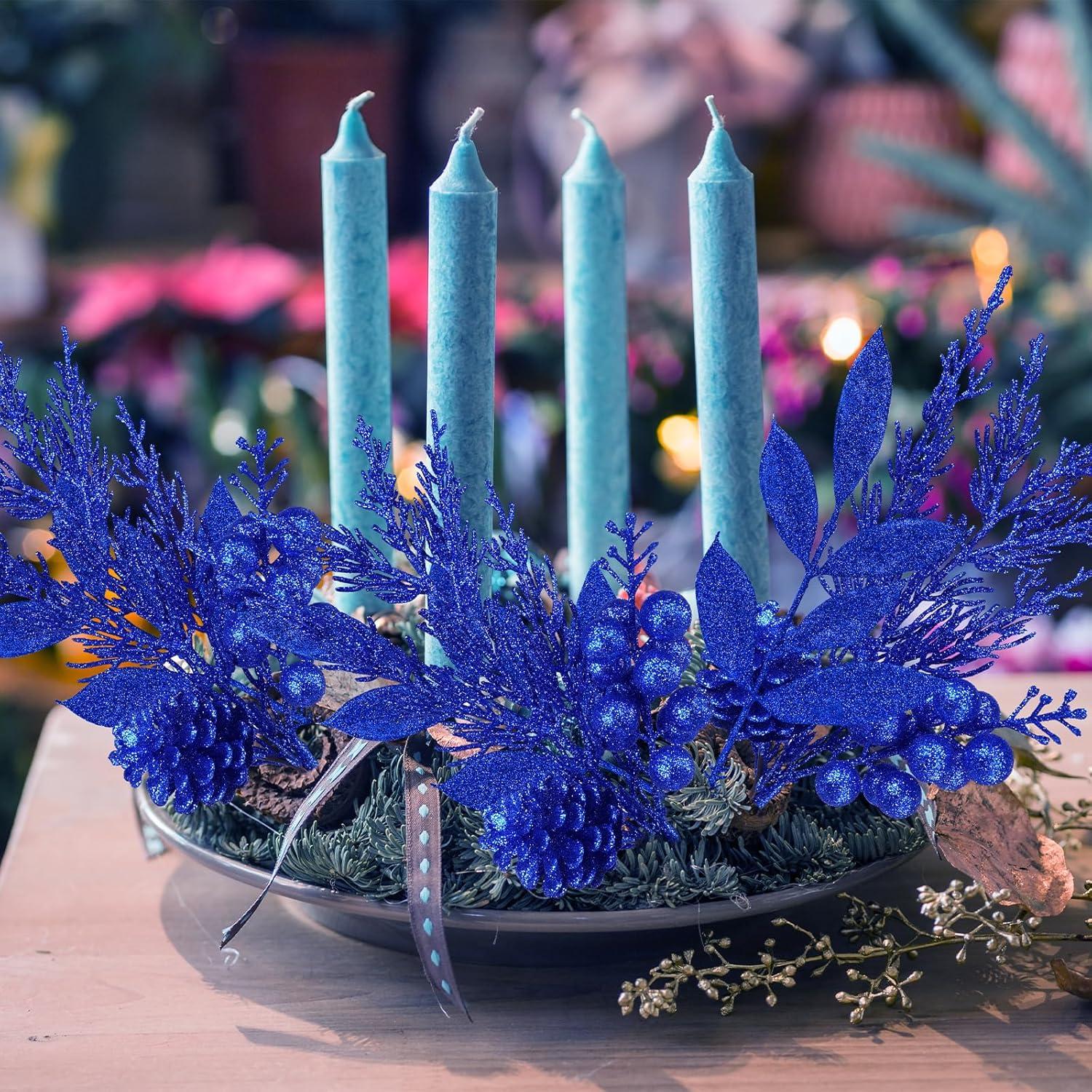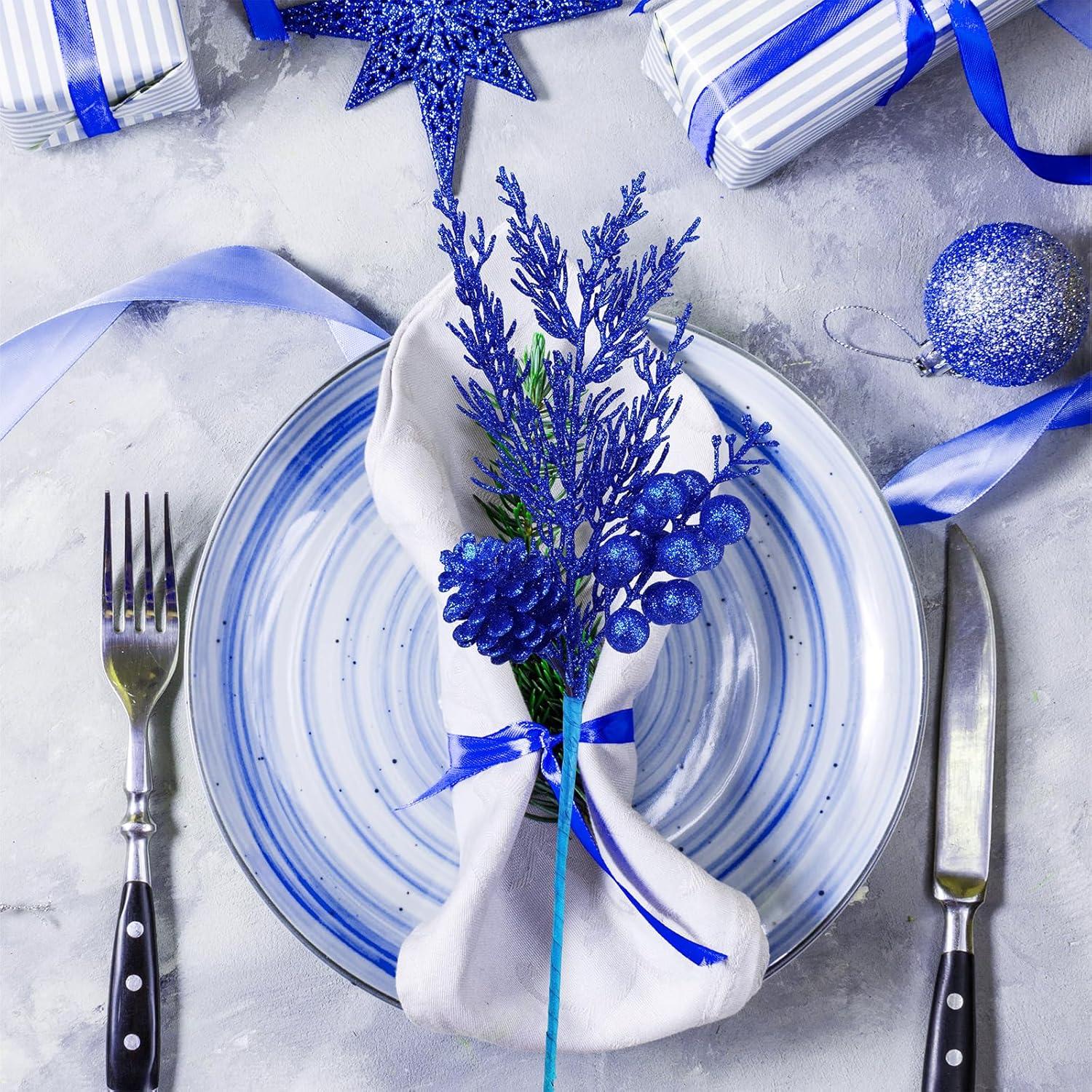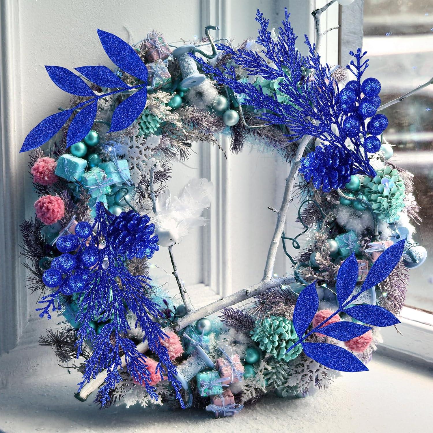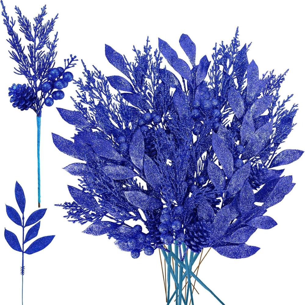Quantity: The package includes 16 silver glittered artificial bay leaf sprays and 8 silver glittered artificial pine branches with pine cone and berry sprigs. These Christmas picks have a sparkling silver glitter finish that will enhance any space with holiday cheer. They are ideal for decorating Christmas trees, creating festive centerpieces, or adding a touch of sparkle to your decor.