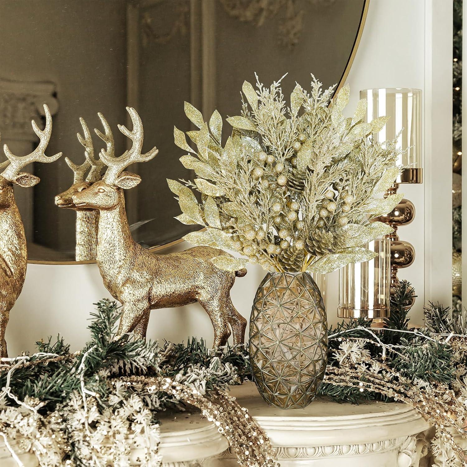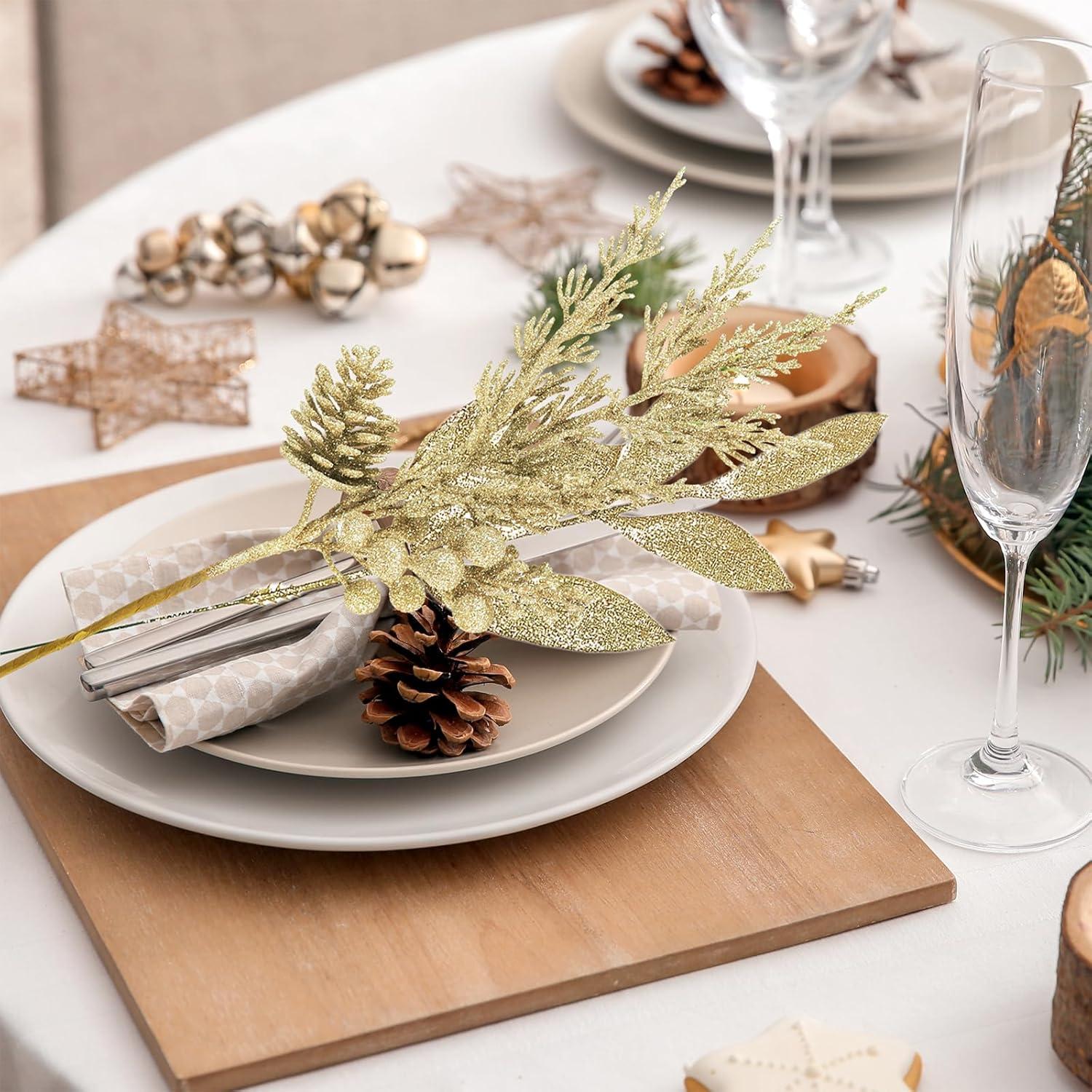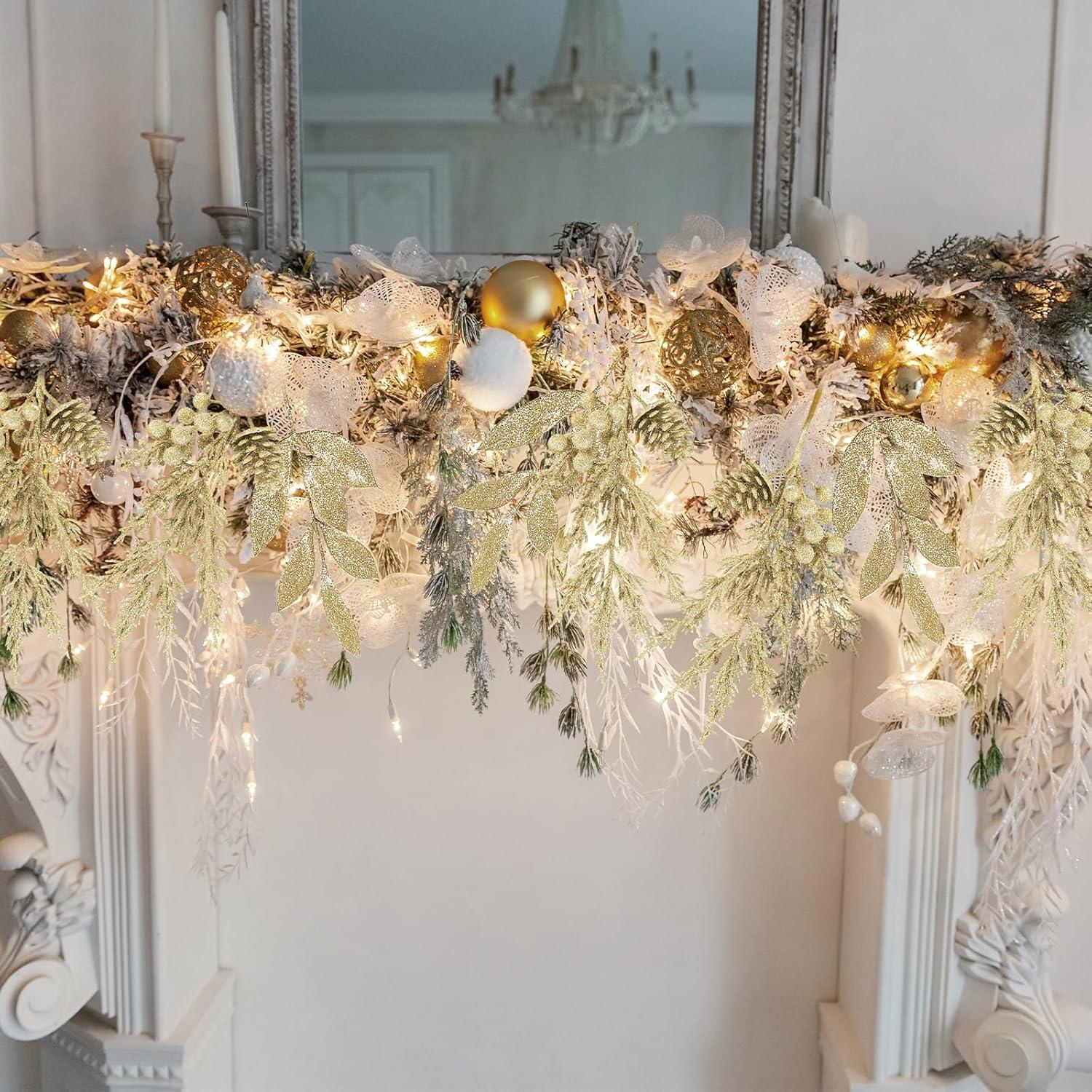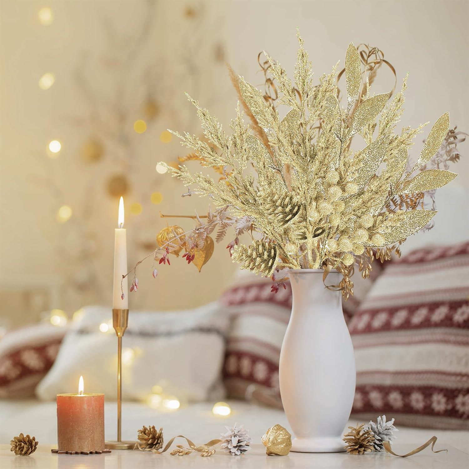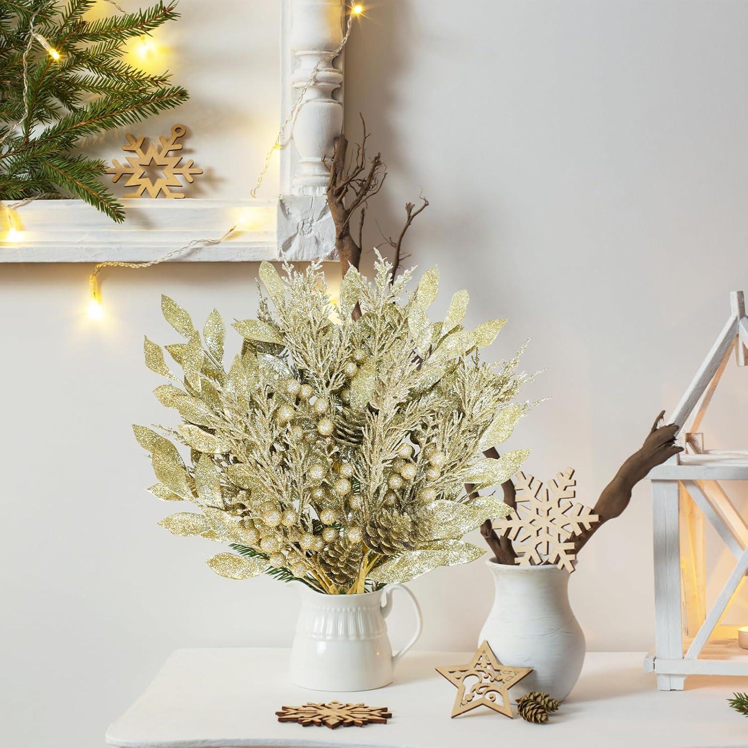 Material: Crafted from plastic, foam, glitter, these glitter leaf sprays and pine branches are designed to maintain their sparkling allure over time. Their flexible wired stems allow for easy bending and shaping, making them perfect for your decorating needs and DIY projects. No need to worry about wilting or watering. Just add these glittery Christmas stems for a touch of long-lasting holiday glam.