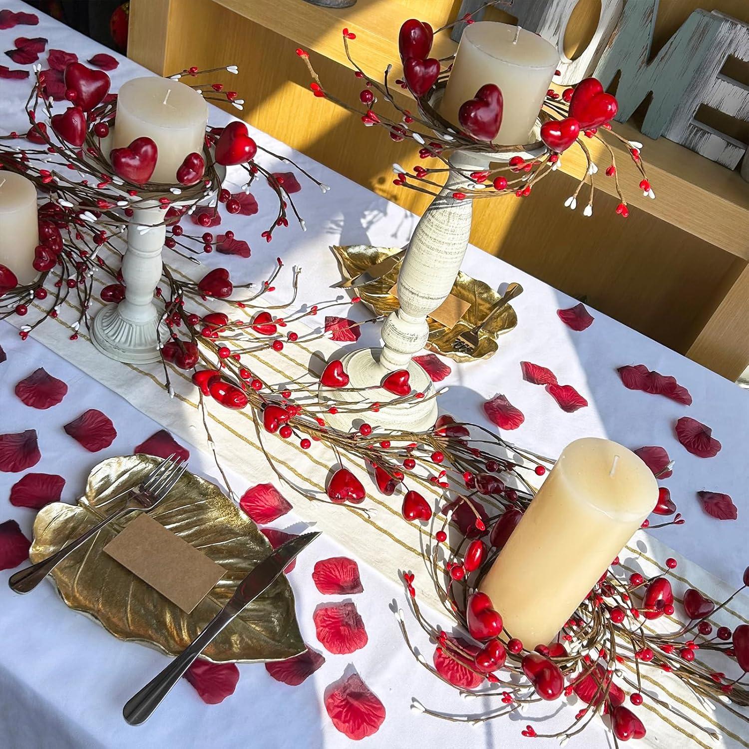 Add a romantic touch to your Valentine's Day and winter decor with these red heart and berry candle holder rings. Perfect for adding to your candle holder base, around your taper candle or pillar candle for an added decorative touch. They would be make a great addition to a centerpiece for your dinner table. You can also use them to decorate the Valentine tree, windows, mantel, doors, and more! Great for Valentine's Day, wedding, Christmas and everyday home decor.
