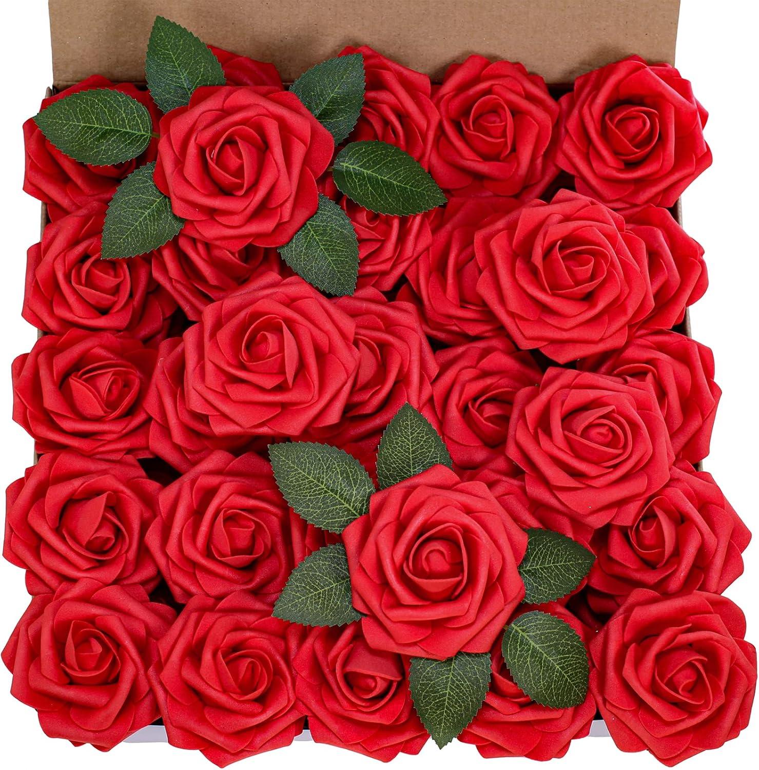 Lightweight & Durable: Our realistic foam roses are lightweight, easy to work with, and maintain their shape, making them ideal for various arrangements and projects without the worry of wilting or damage. The synthetic material that looks like velvet, the material feels soft, and the flowers appear like real rose flowers, while the fake rose leaves have jagged edges and visible veins, making them look lifelike.
